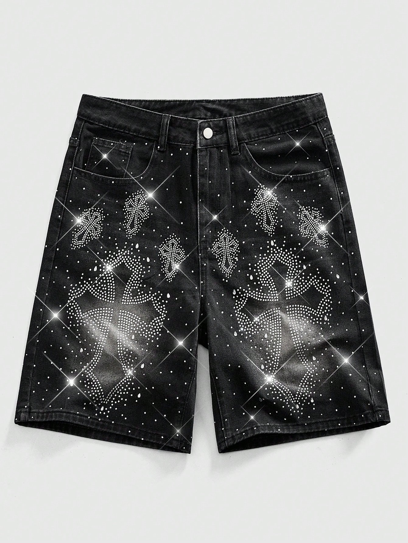 شورتات جينز كاجوال للرجال مغسولة مزينة بالراين كروس