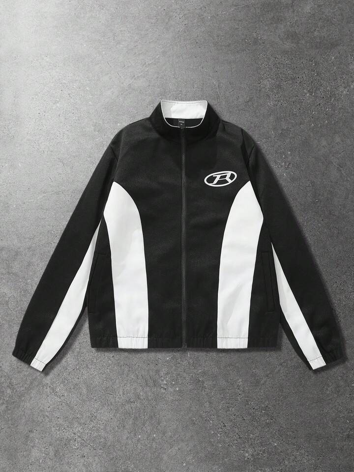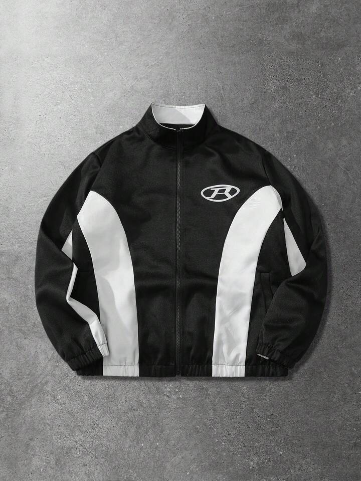 جاكيت رياضية للرجال بتصميم لوحة ألوان متباينة وطباعة جرافيك