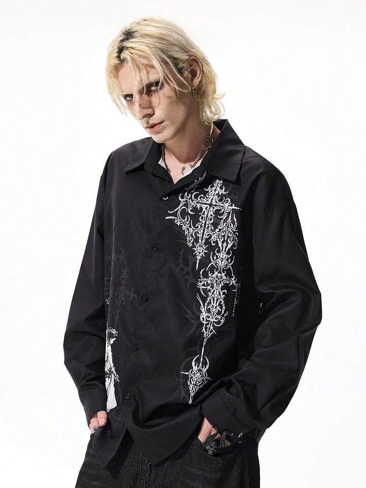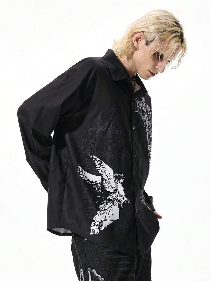 قميص كاجوال أنيق بطبعة ملاك داكن للرجال