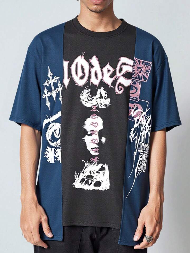 Goth قميص تي شيرت رجالي بتصميم باتشوورك أسود غوثي، للارتداء اليومي العادي، للربيع والصيف، وحفلات الهالوين