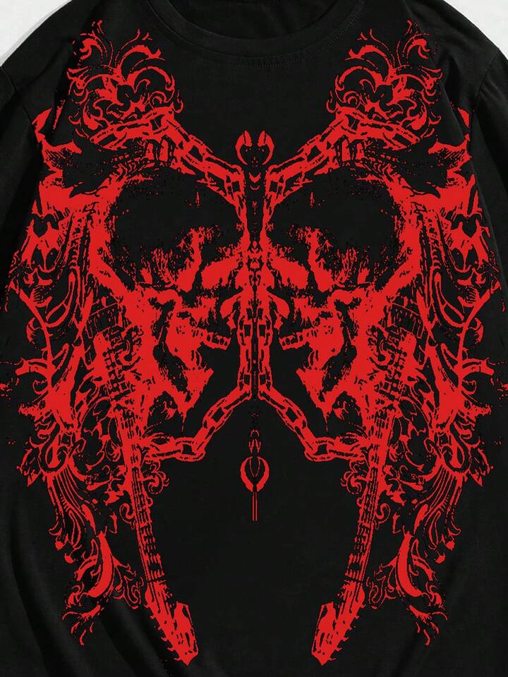 Goth قميص تي شيرت قصير الأكمام بطباعة جوتيك للرجال