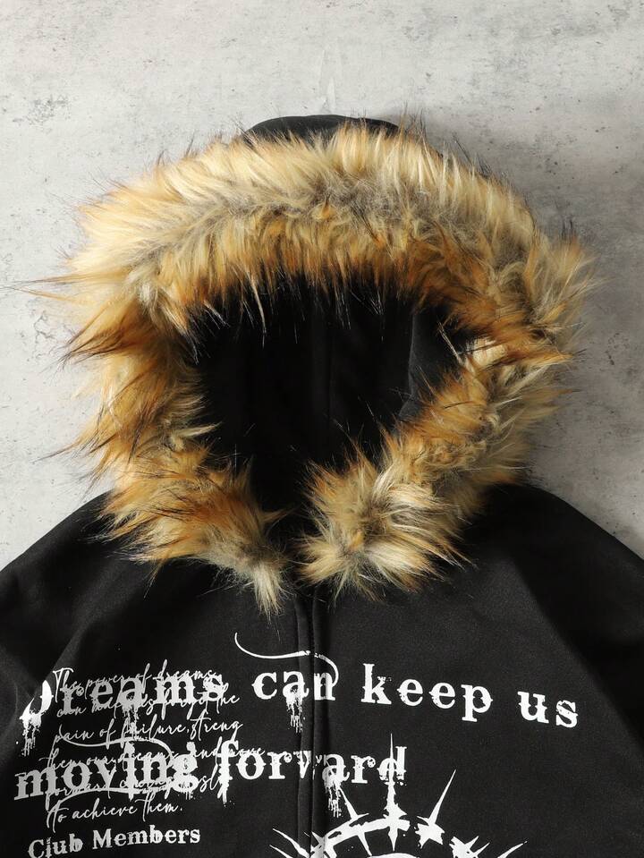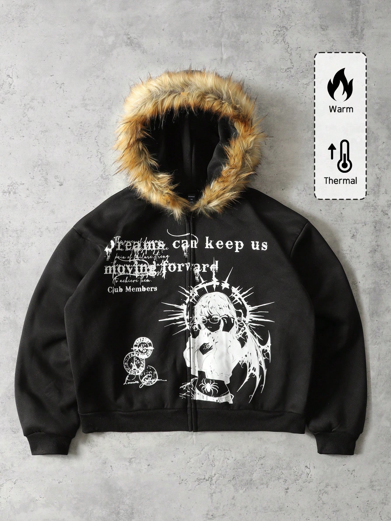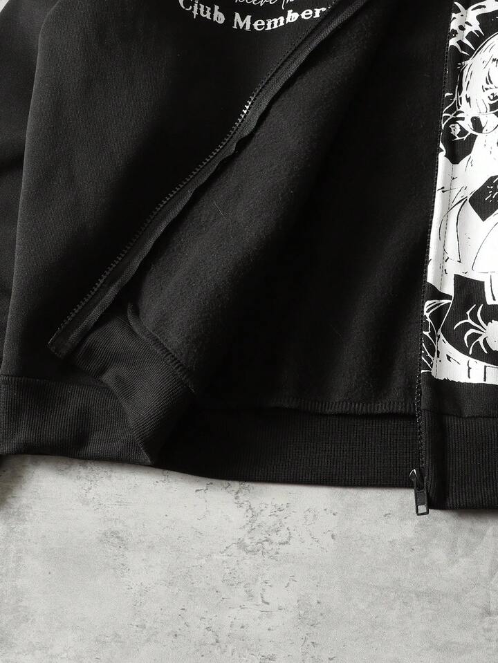 Anime كارديجان مطبوع بياقة من الفليس مع كابوشون، قياس فضفاض