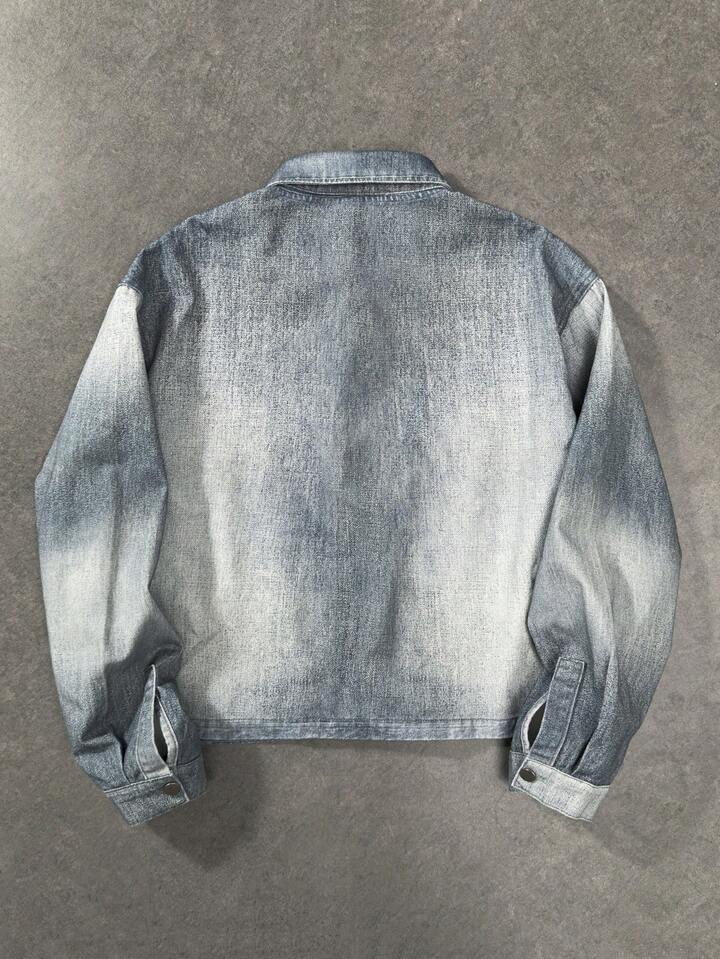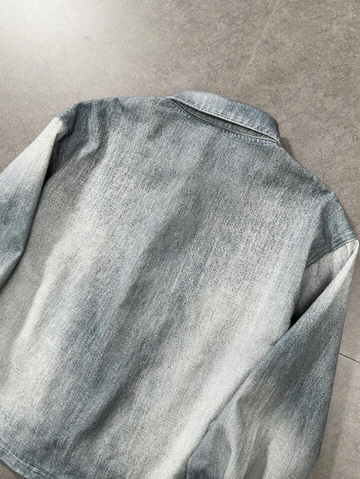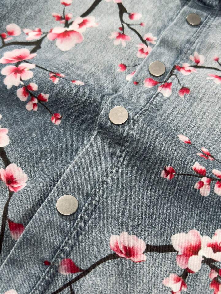 قميص جينز بأكمام طويلة مطبوع بالزهور للرجال