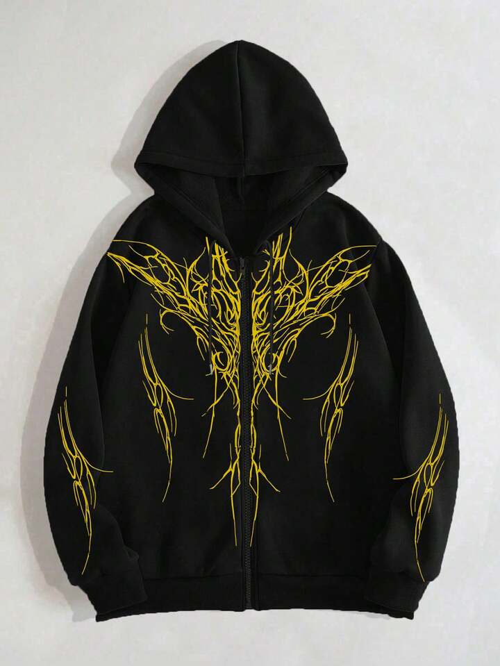 Goth بلوزة رجالية بغطاء رأس مطبوعة بطراز جوثيك، سحاب أمامي وسير للربط، أكمام طويلة، مناسبة للخريف والشتاء
