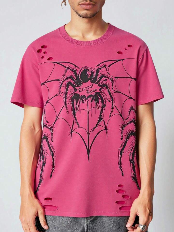 Goth قميص تي شيرت رجالي مهترئ بطبعة عنكبوت جوتيك، مناسب للربيع والصيف، عيد الهالوين