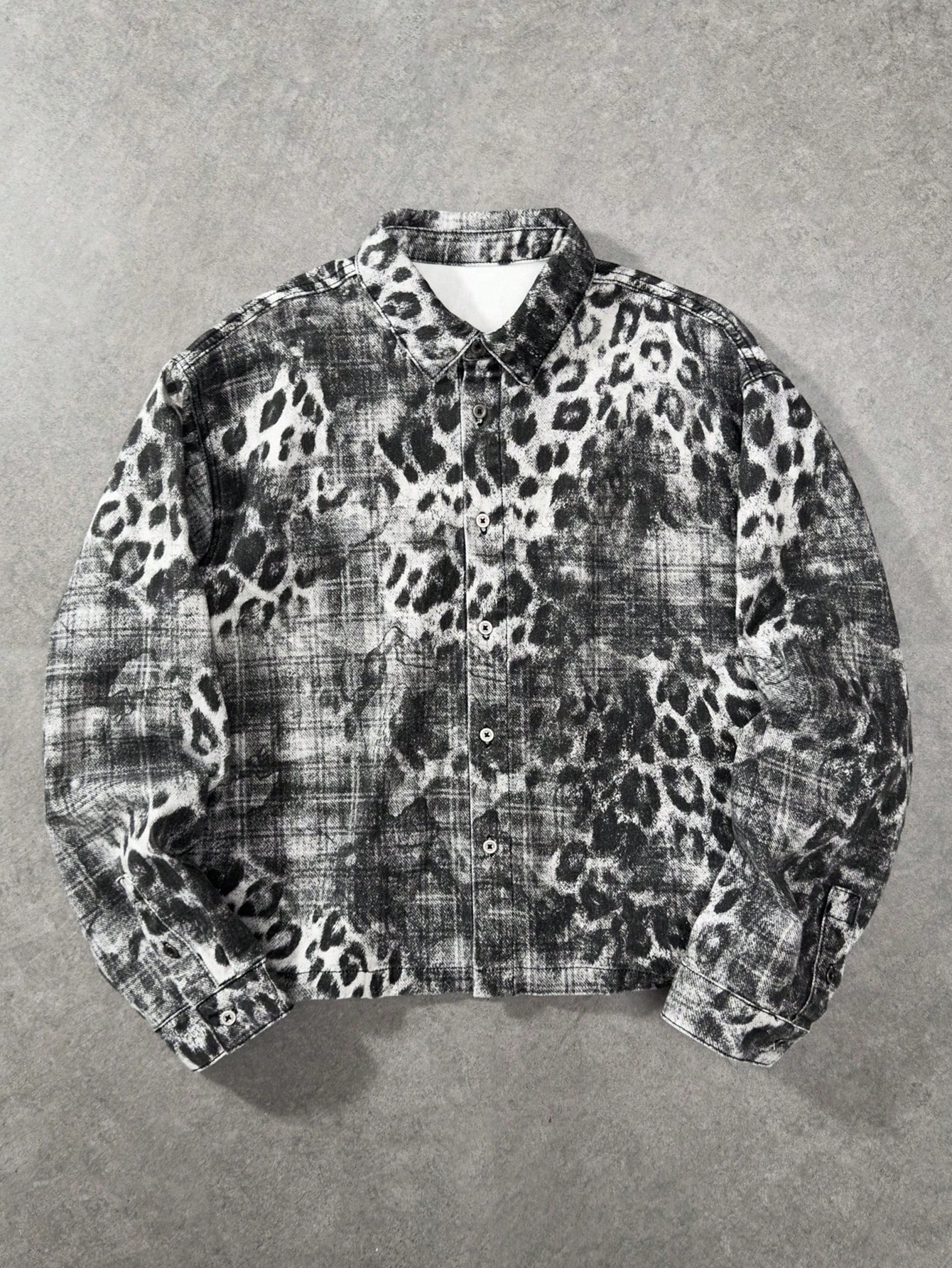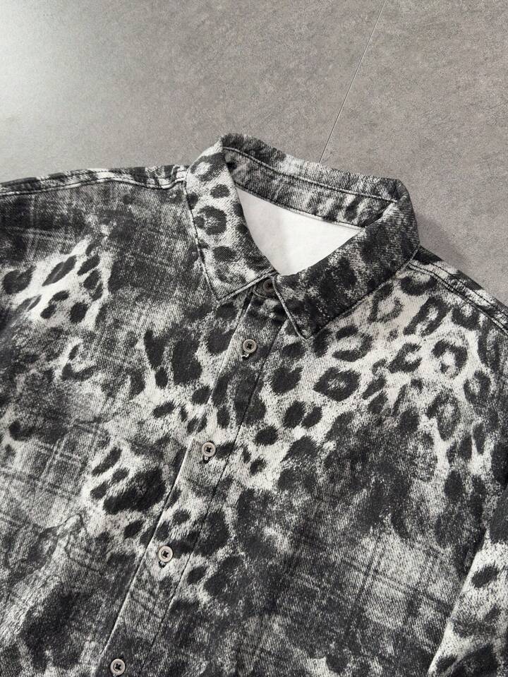 قميص رجالي أكمام طويلة بأزرار أمامية بطبعات المربعات والنمر