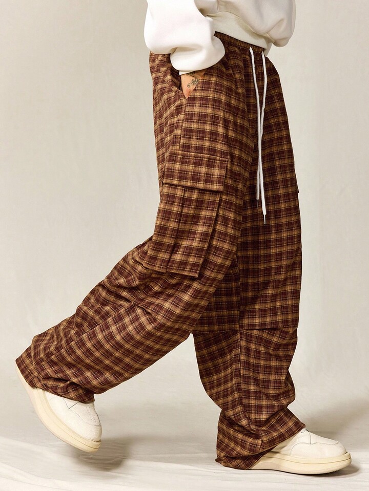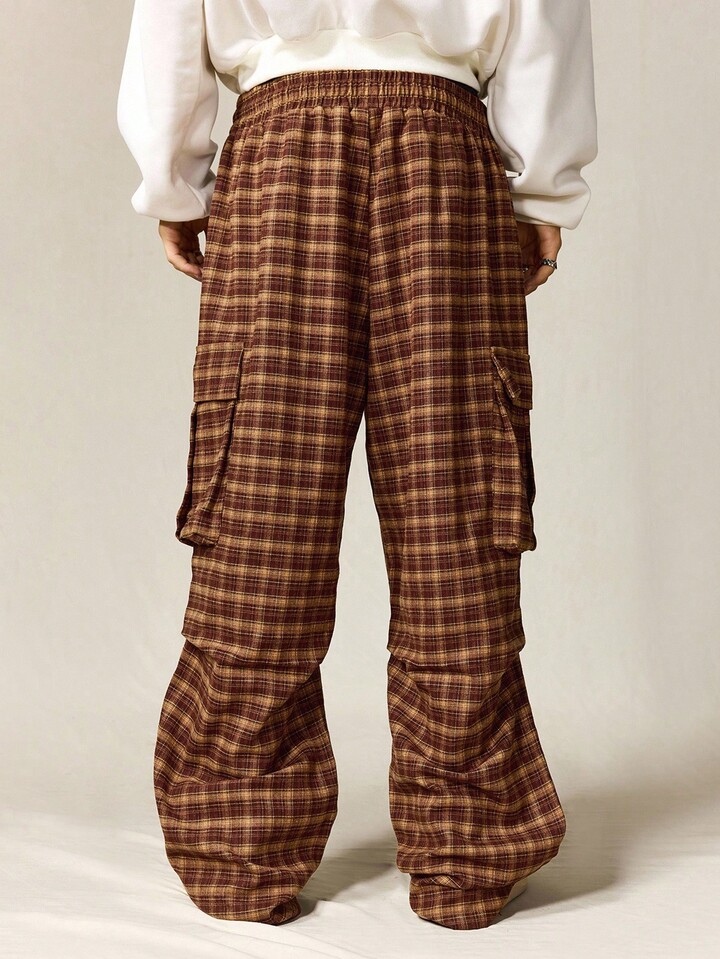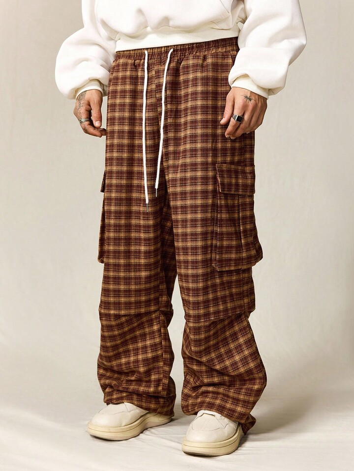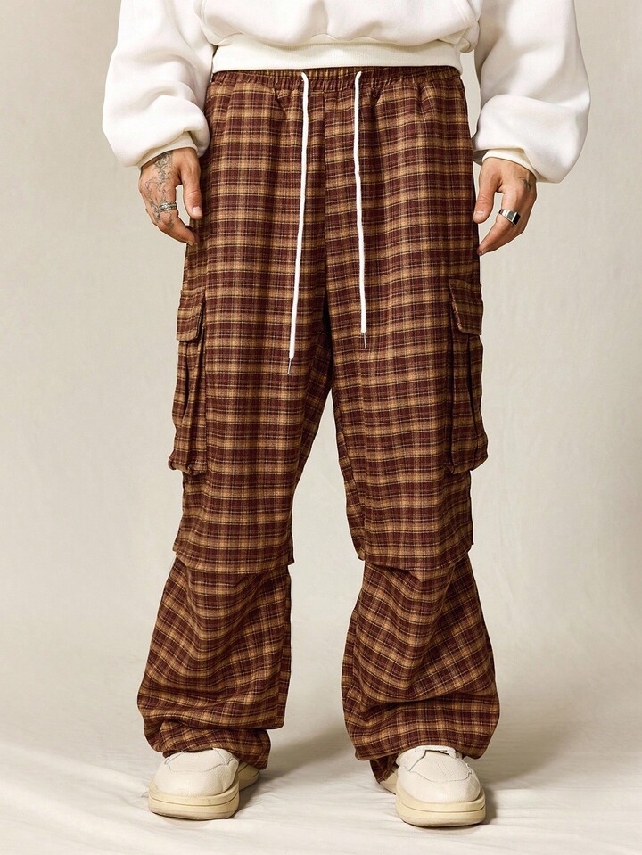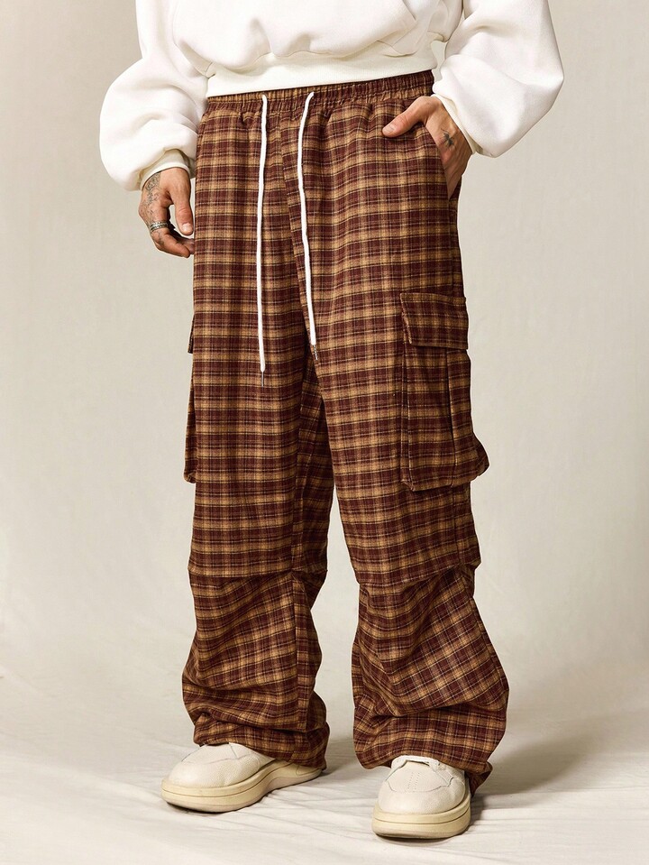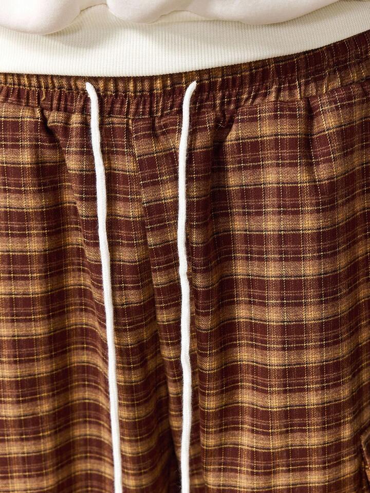 Prep بنطلون رجالي كاجوال بخصر مطاطي وجيوب بطبعة مربعات، للموسم الخريفي