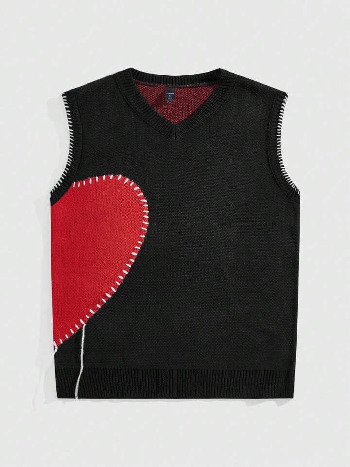 كنزة صوفية بسيطة عارية الذراعين للرجال بنمط قلبية عادية