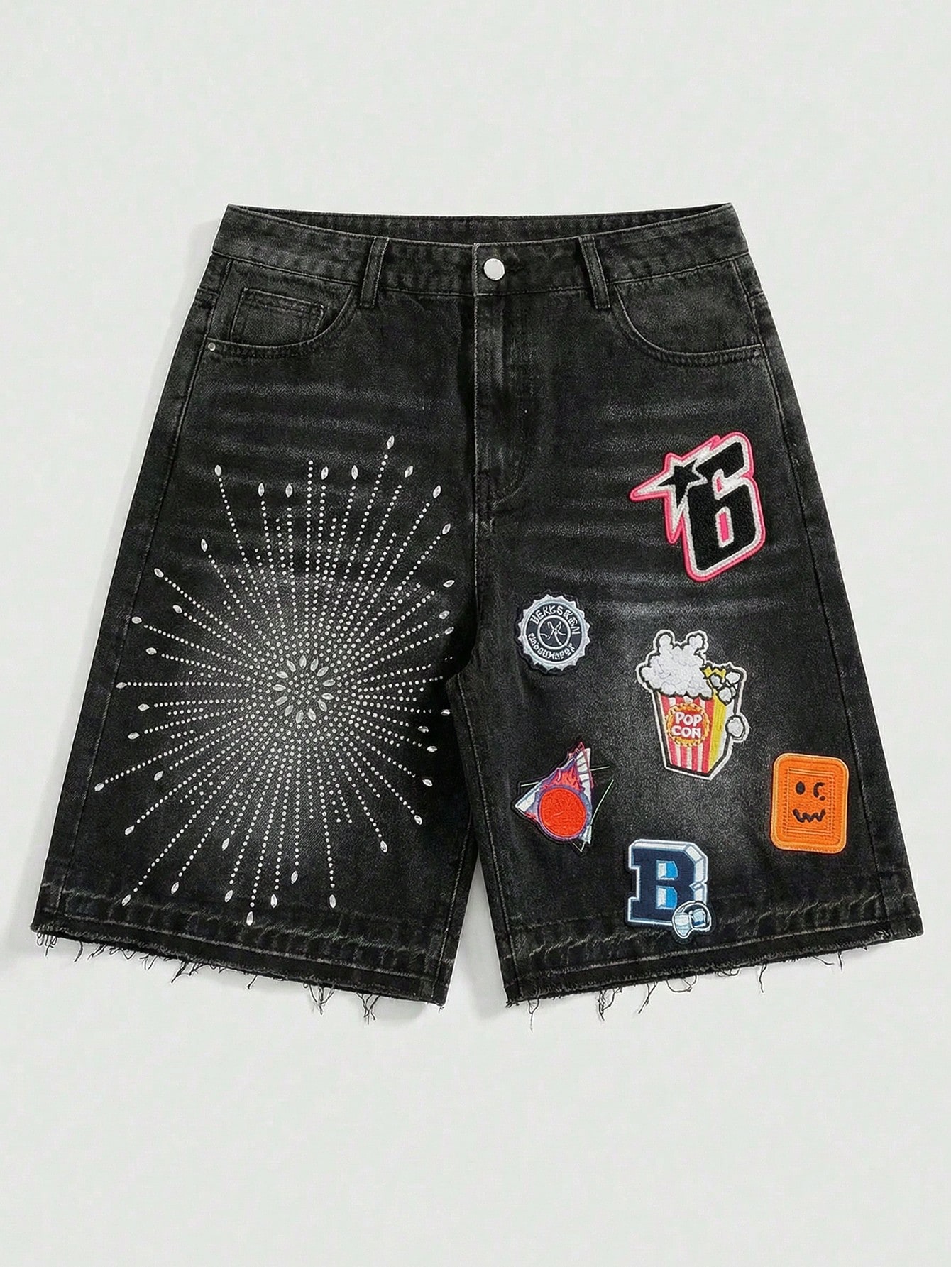 شورت جينز فضفاض مطرز بالراين ستون للرجال