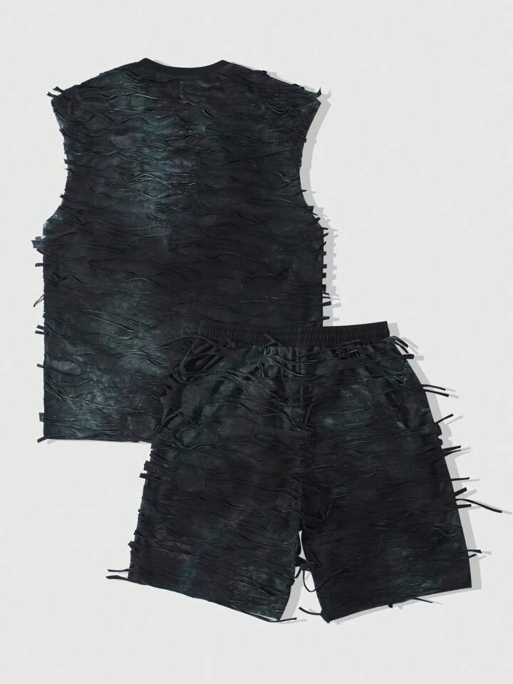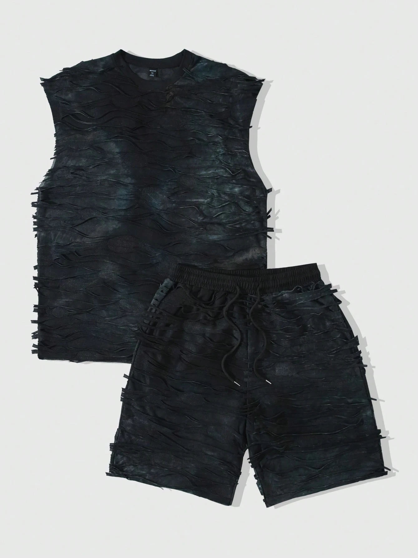 Street Life مجموعة سترة مهترئة وشورت بخصر رباط للرجال