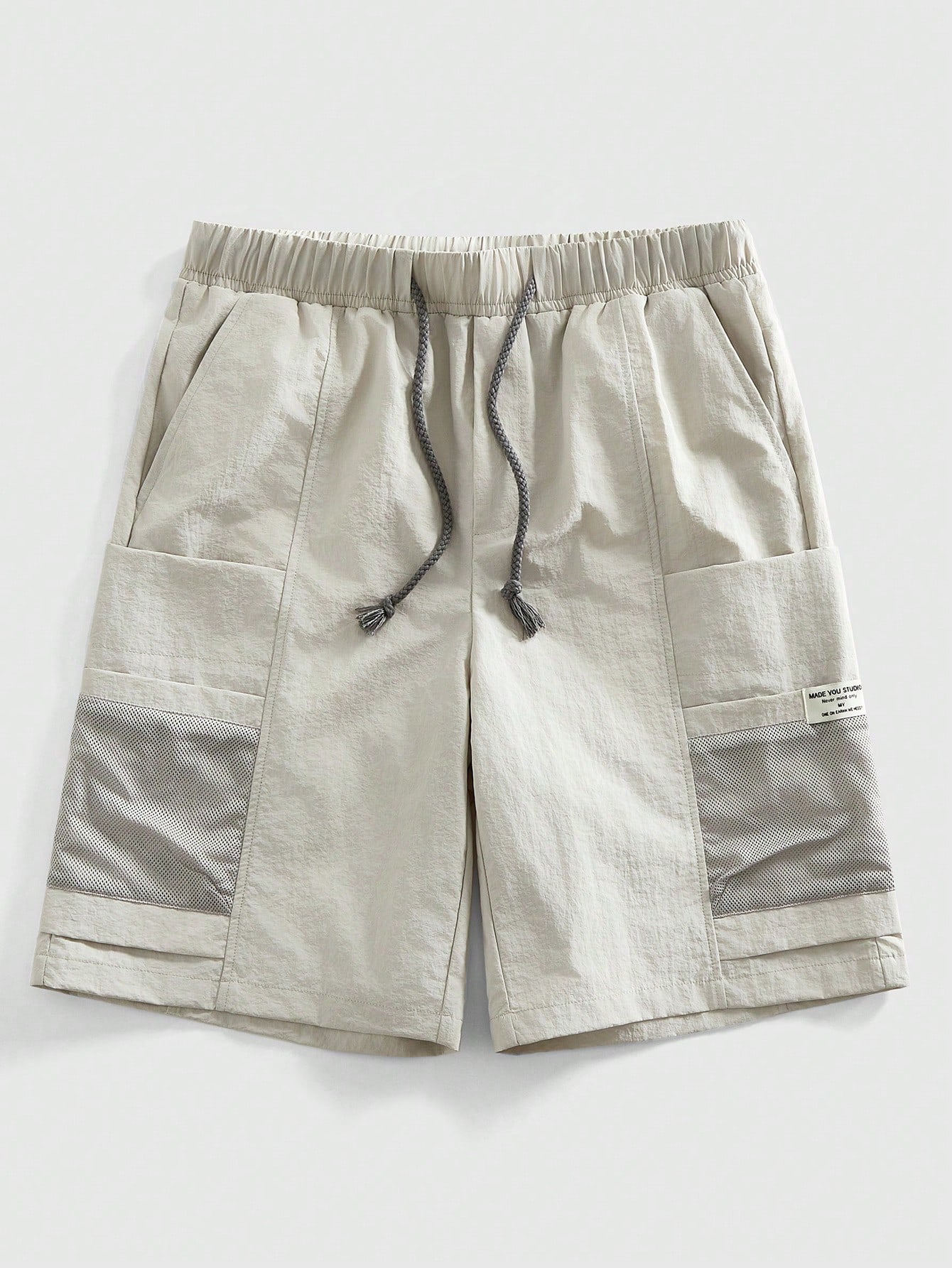 Casual شورت رجالي صيفي كاجوال عصري للارتداء اليومي والتنقل، بخصر رباط، قماش شبكي ملون بتصميم لاصق