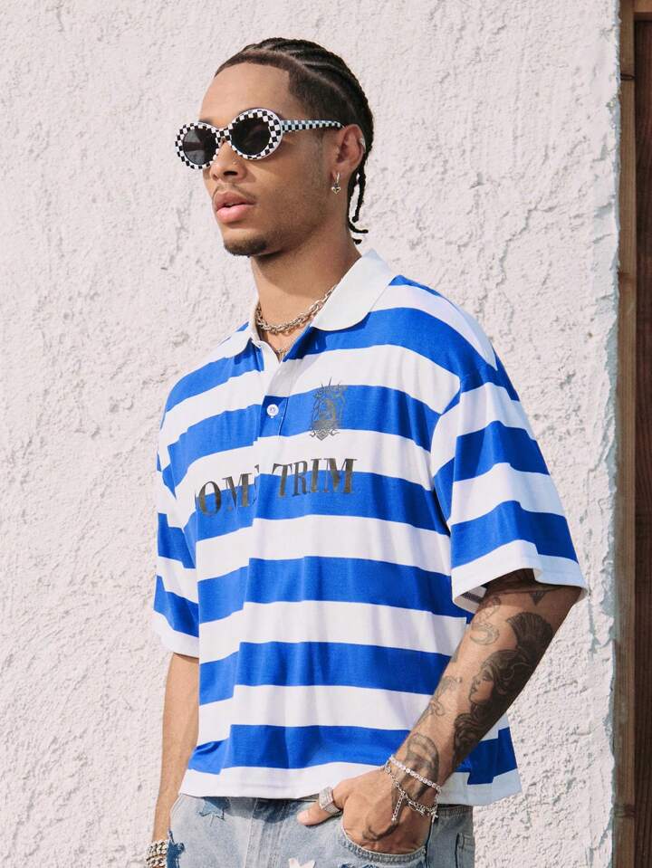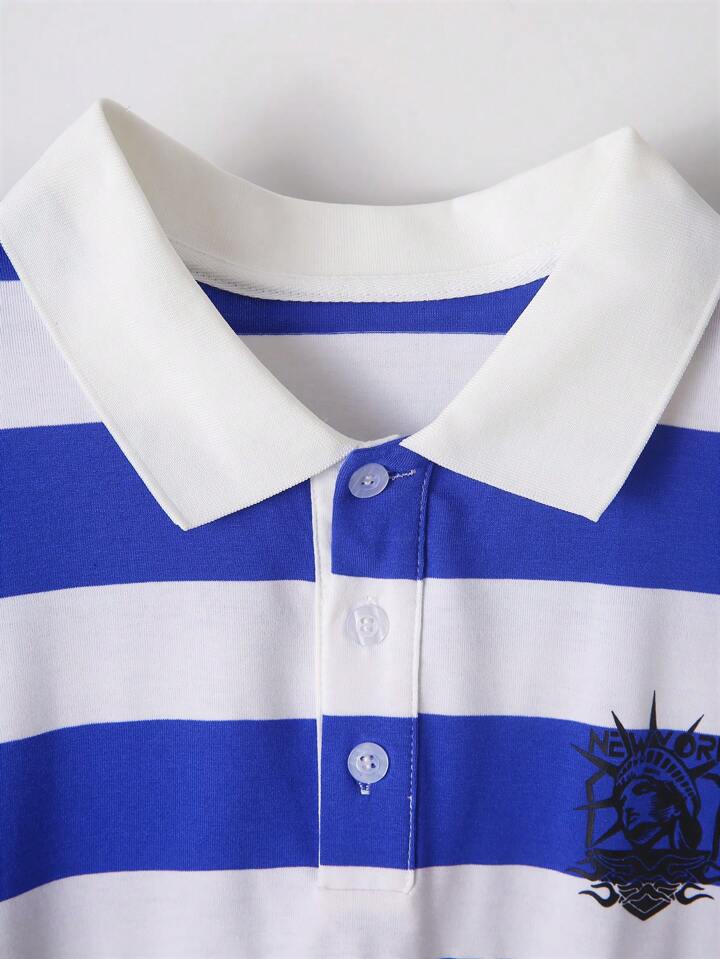 Prep قميص بولو أكمام قصيرة عصري مخطط بألوان متعددة للرجال