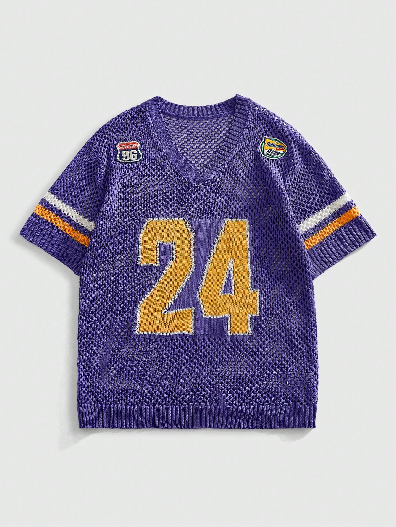 كنزة صوفية صوفية بياقة على شكل حرف V مستوحاة من كرة القدم، موضة الشارع