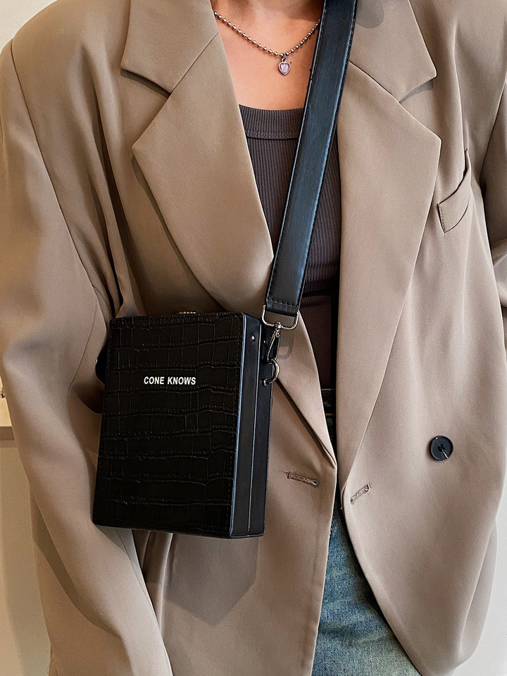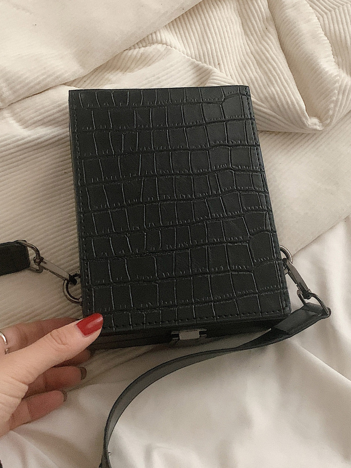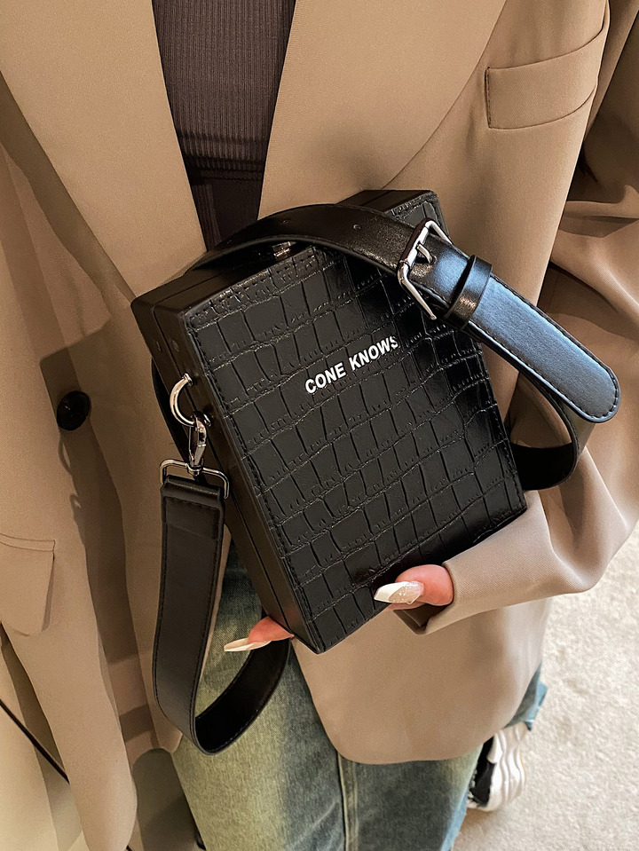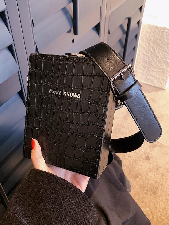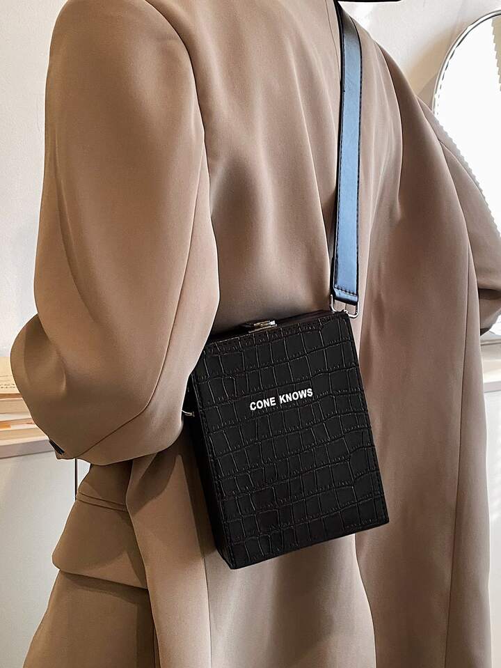 حقيبة شكل صندوق ميني بطباعة أحرف بنقش تمساح جلد صناعي
