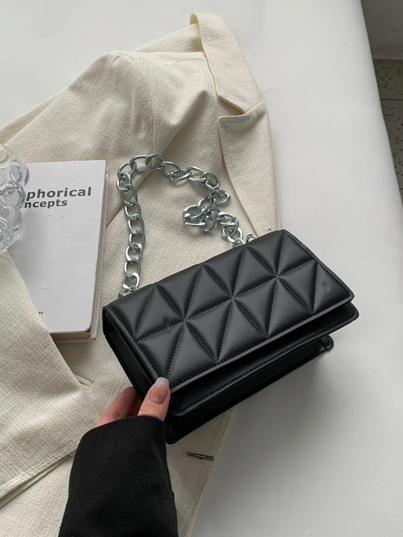 حقيبة مربعة ميني مبطن سلسلة حزام أنيق