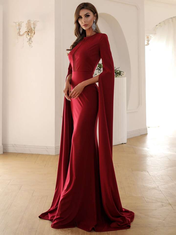 Missord فستان حفلة موسيقية ماكسي بادخال شبكي بأكمام مقسمة