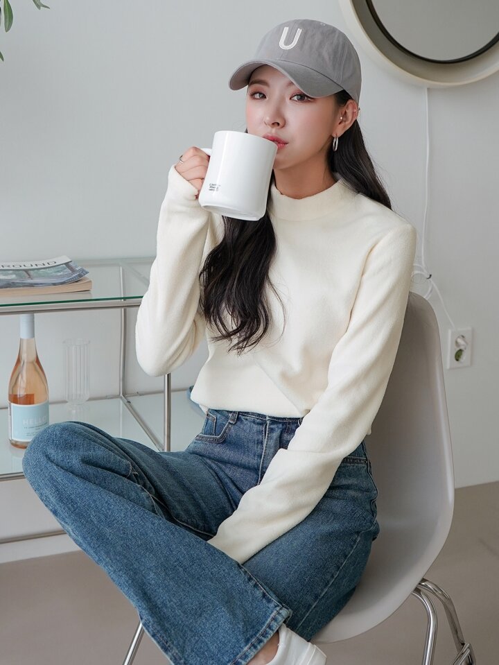 تي شيرت شتوي مخملي بياقة عالية