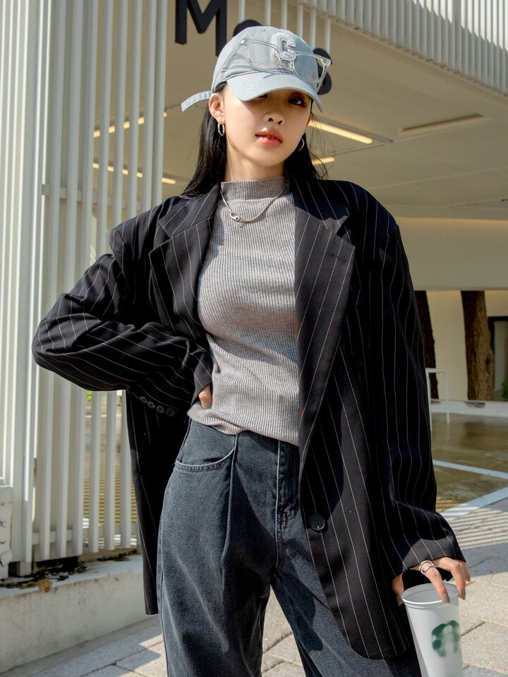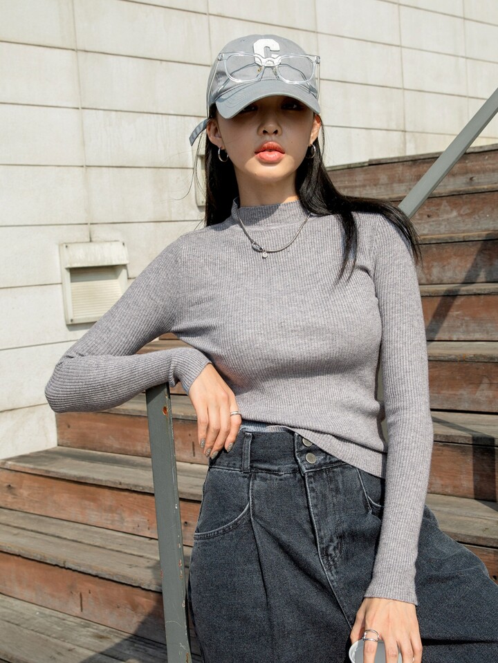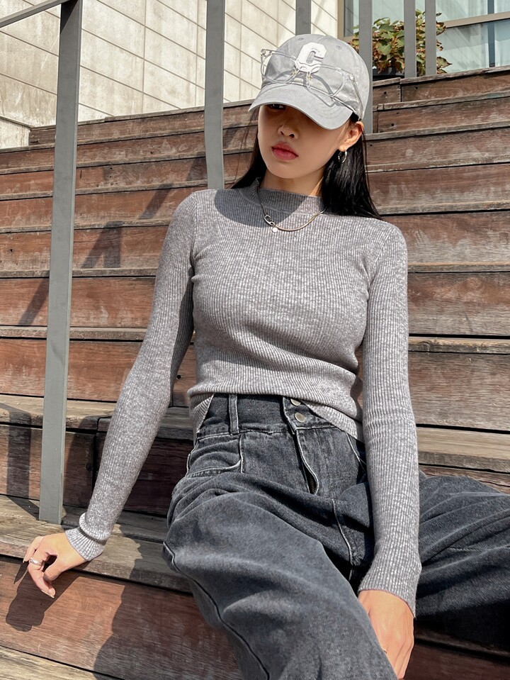 لباس علوي صوف محبوك مضلع وبياقة دائري