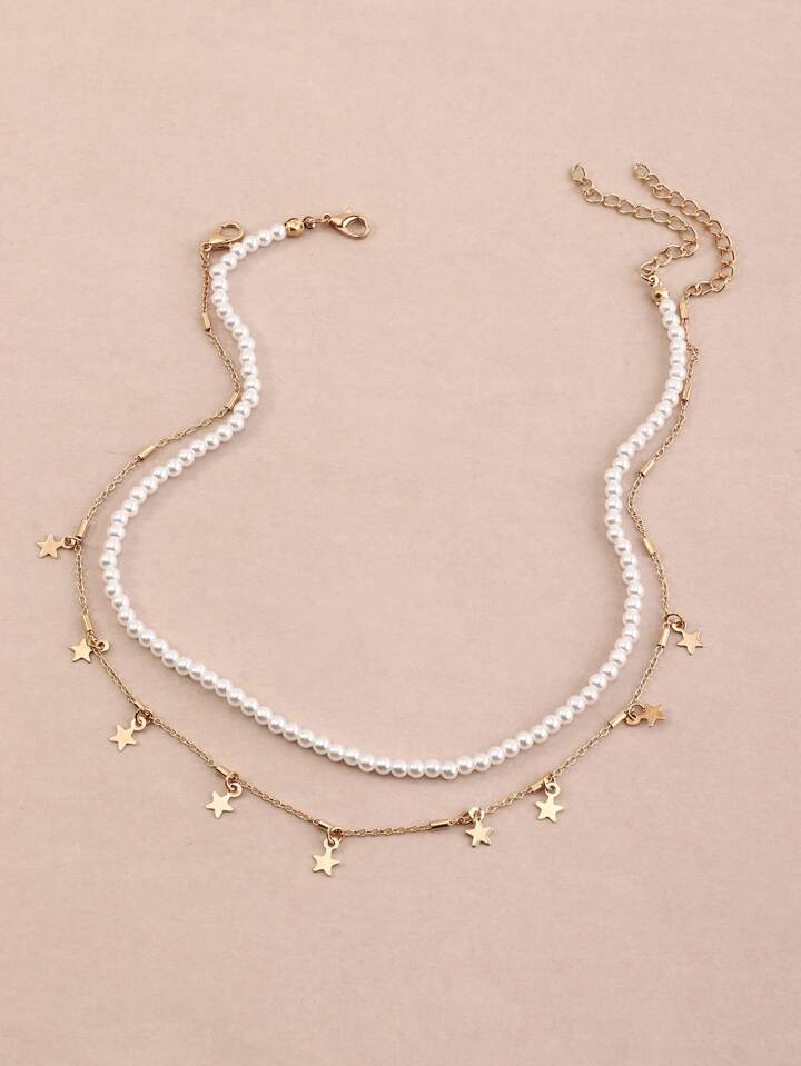 NAIZHU قلادة خرز من مجموعة اللؤلؤ الاصطناعي بعدد 2 قطعة