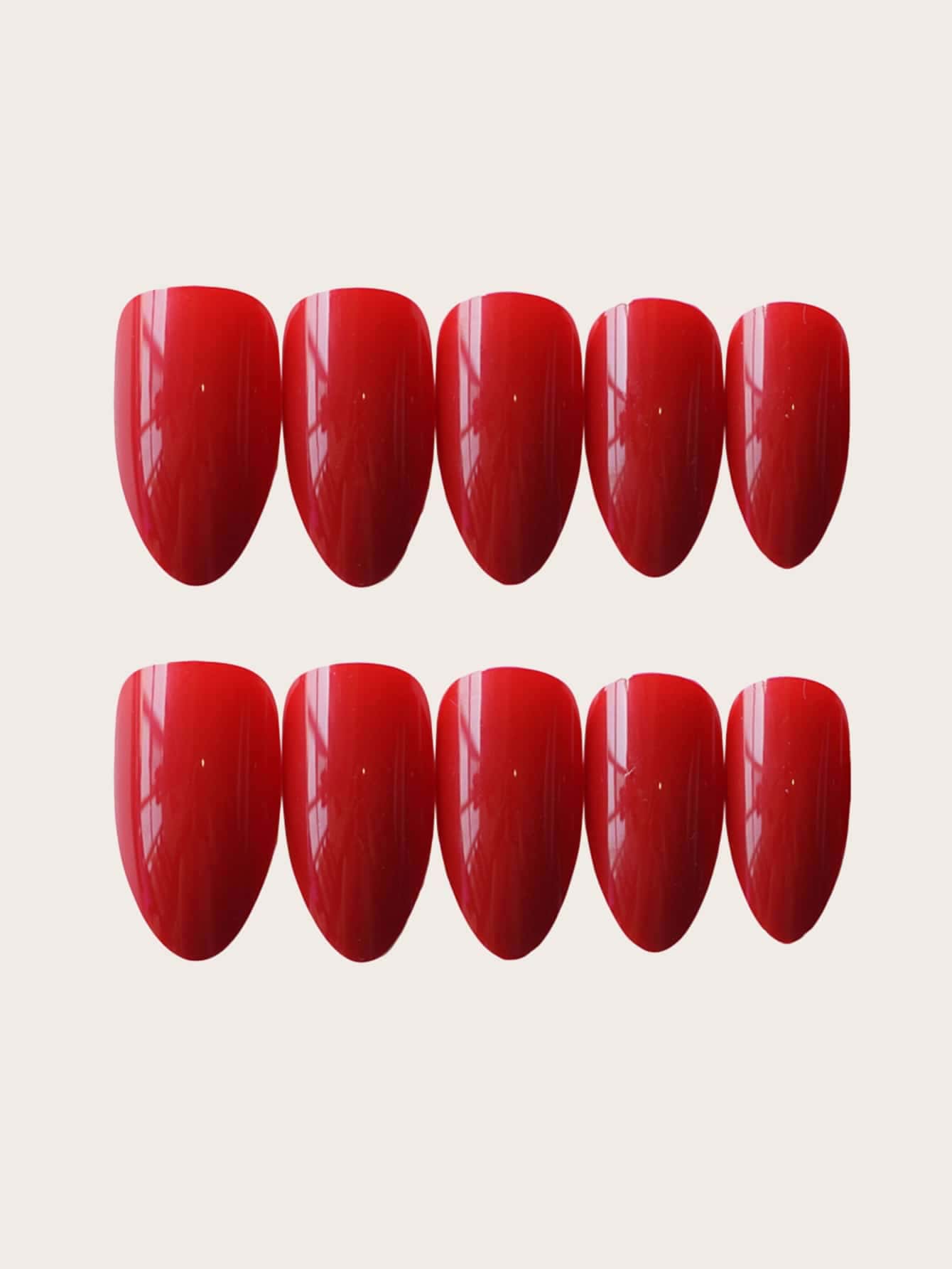 Nail Nina قم بتحويل أظافرك مع 24 قطعة من الأظافر الاصطناعية الحادة الإضافية الطويلة باللون الأحمر اللامع المظهر الممتاز، ومعها مبراة أظافر وورق لصق للأظافر، مستلزمات الأظافر