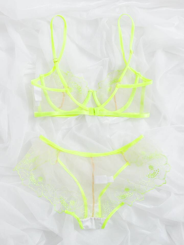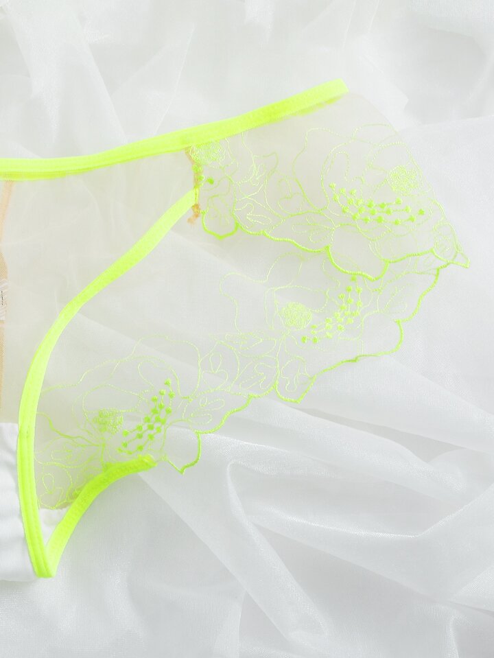 طقم ملابس داخلية شبكي مطرز بلون النيون الليون