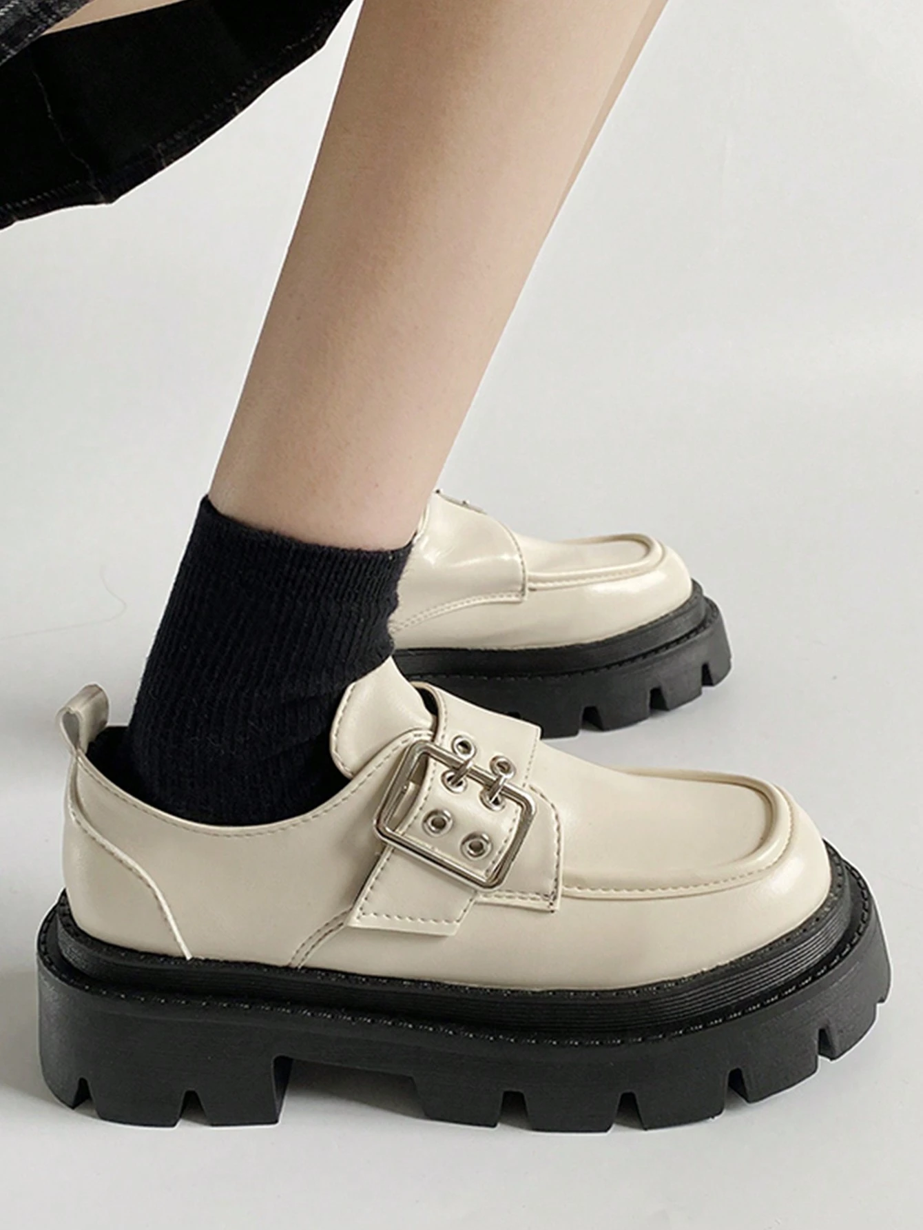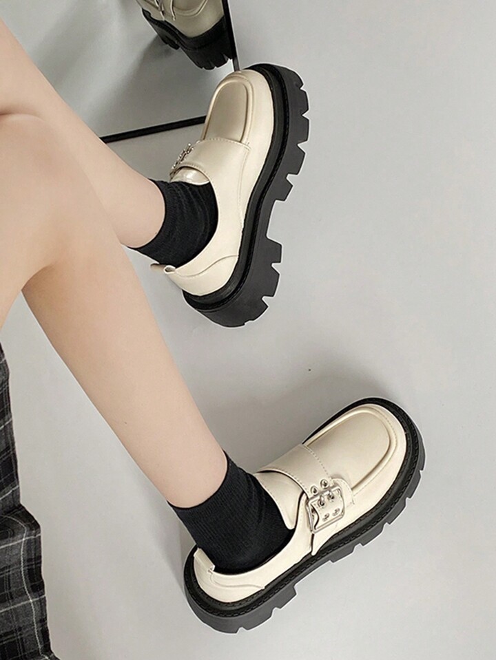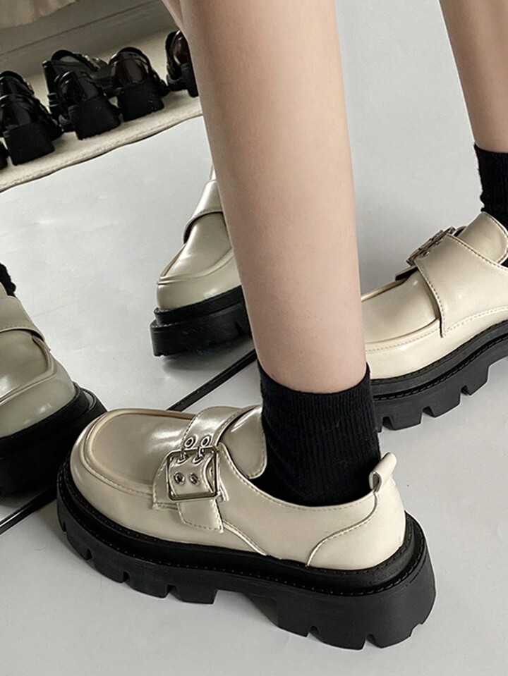 وصل حديثًا حذاء جين من الجلد ذو نعل سميك على الطراز البريطاني لعام 2023 مع حذاء جين على الطراز الياباني الحلو والرائع للنساء، زيادة الارتفاع