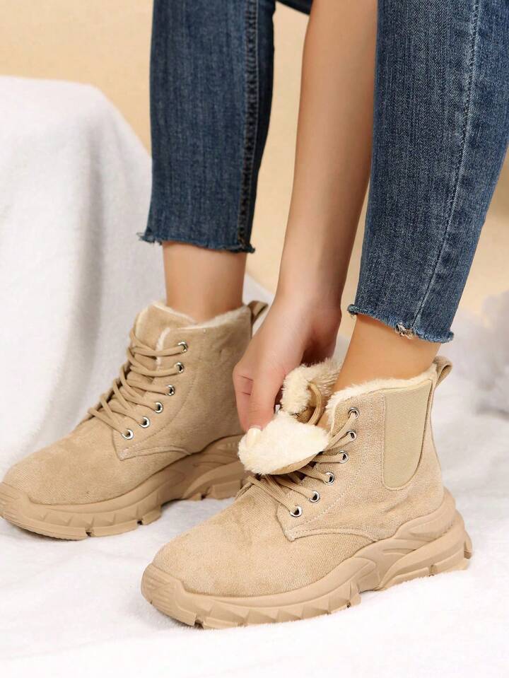بوت نسائية شتوية قصيرة مبطنة بطبقة عازلة للحرارة, دافئة وعملية الاستخدام