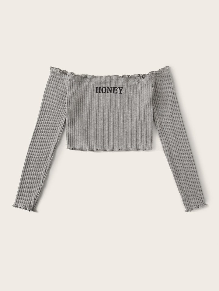 لباس علوي بطباعة عبارة ومقلم مكشكش ومكشوف الاكتاف