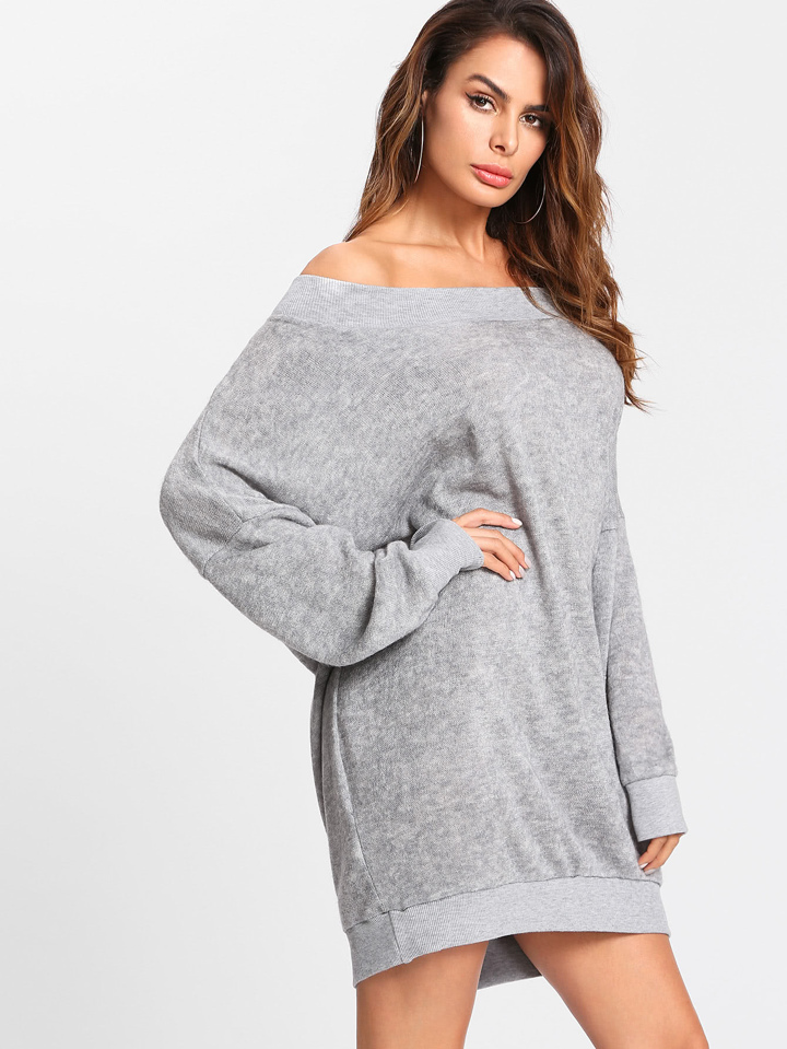 فستان صوفي مخيط نقوش الرخام سقوط الكتف