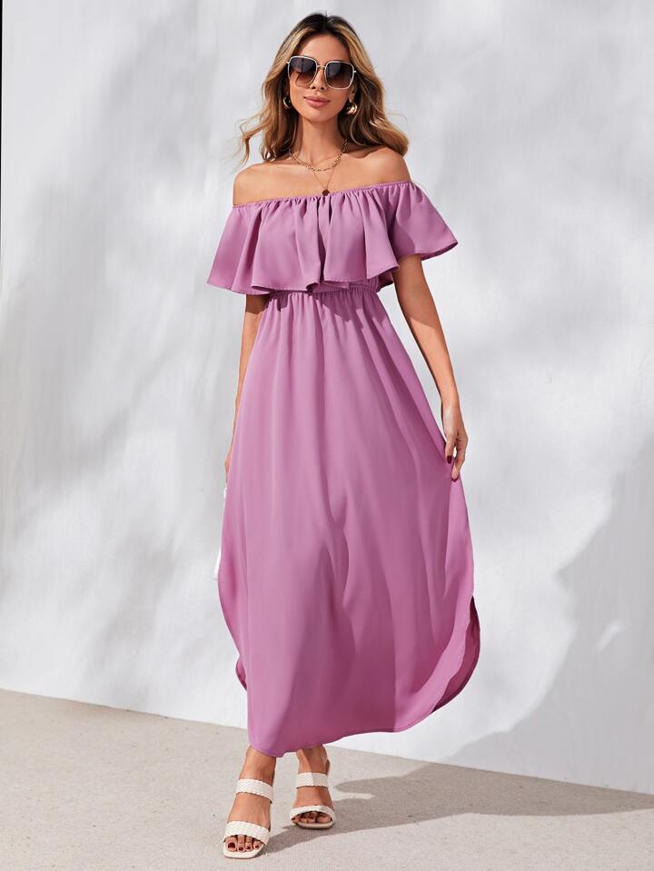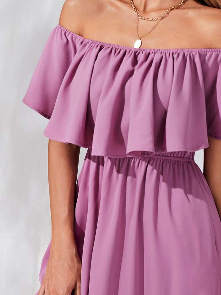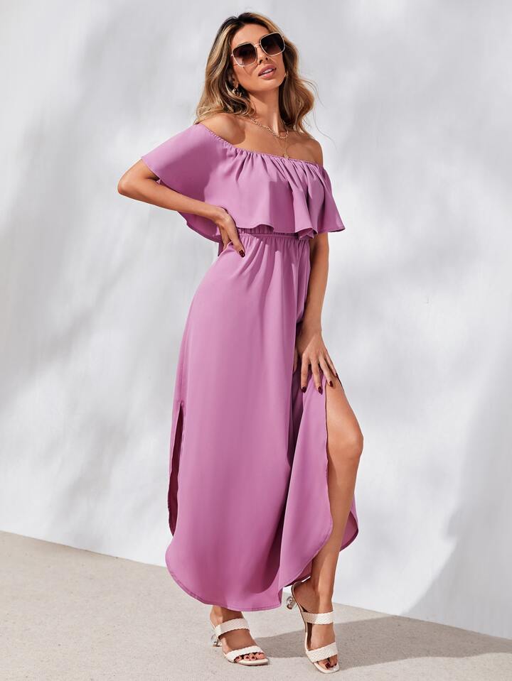 فستان وصيفة العروسة مكشوف الكتف فتحة للفخذ بشريط A