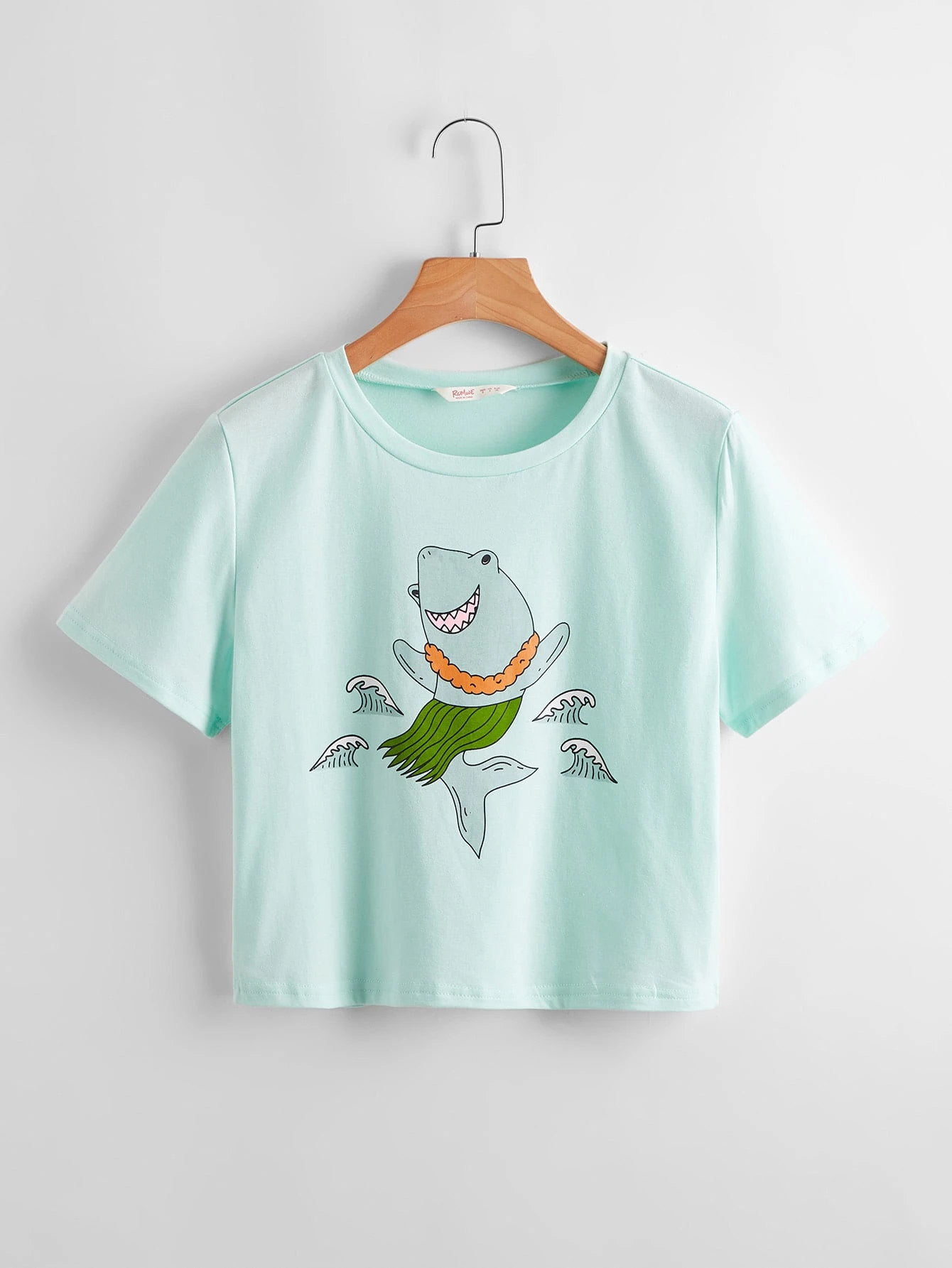 Olinevod تي شيرت بجرافيك قرش رسوم كارتون