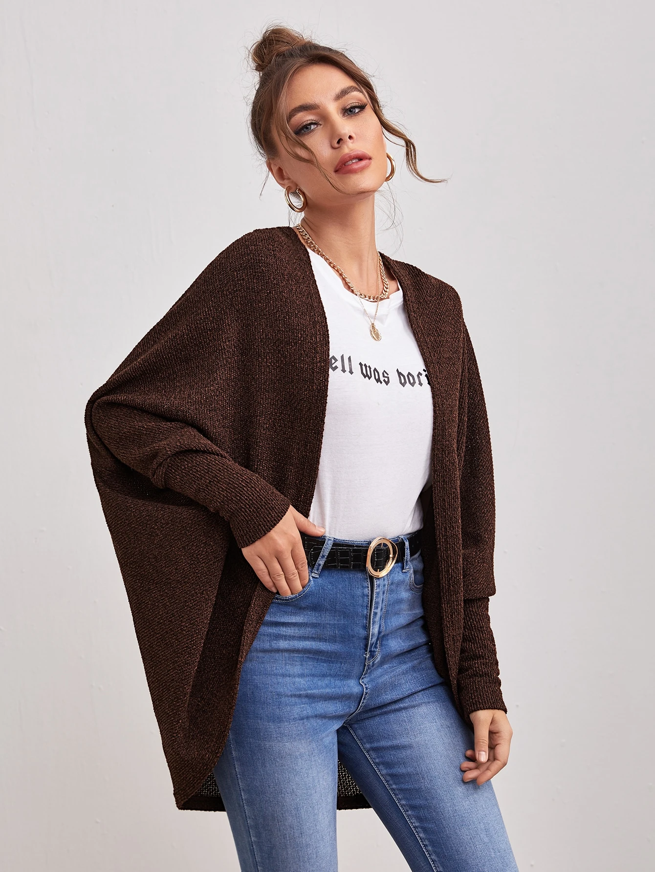 معطف بأكمام دلمان مفتوح من الامام