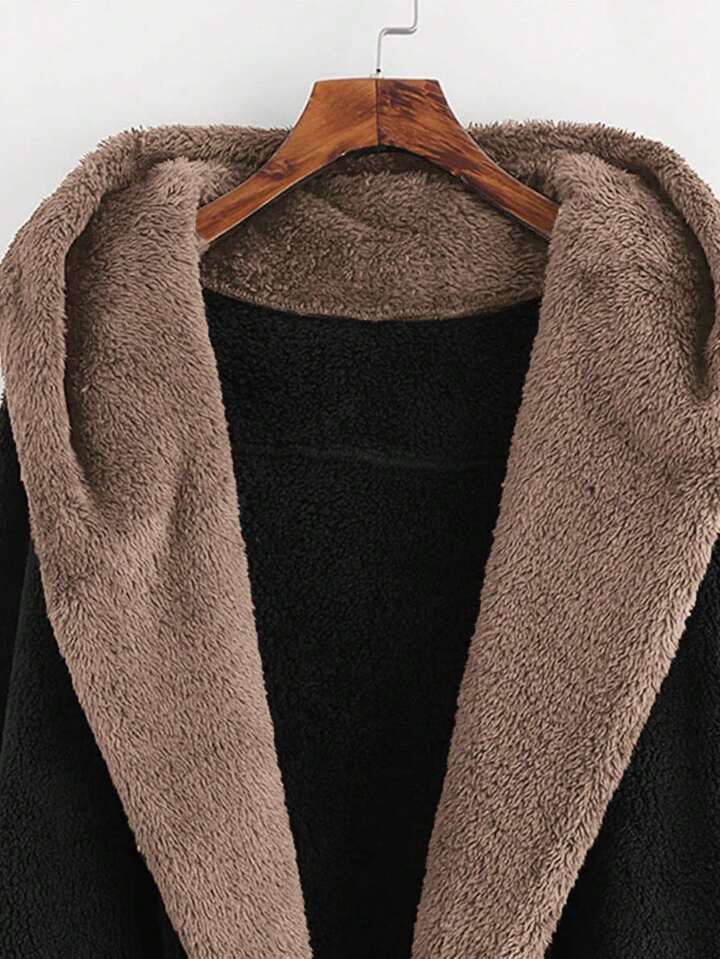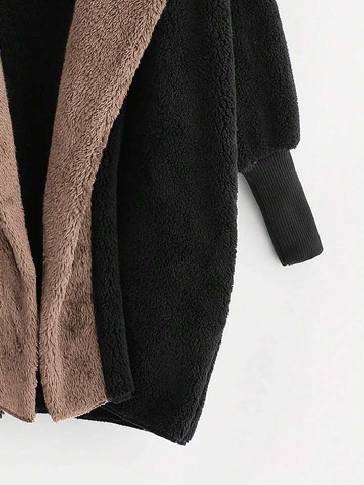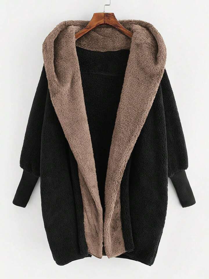 معطف تيديمع غطاء راس من فو الفراء الاصطناعية مفتوحة