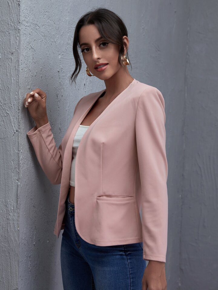 بليزر بلون موحد ومفتوح من الامام
