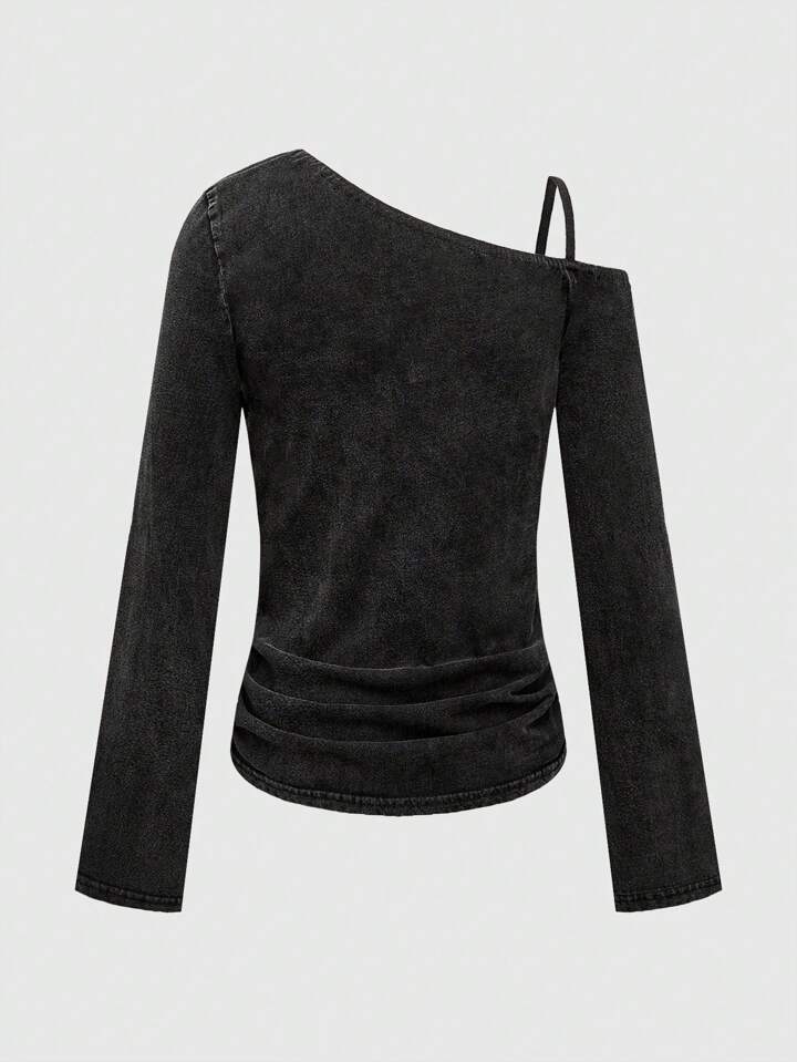 Pahlevi تي شيرت بطبعة وجه بنمط بانك مشوه وغسل الثلج مع كتف منخفض ومخيط