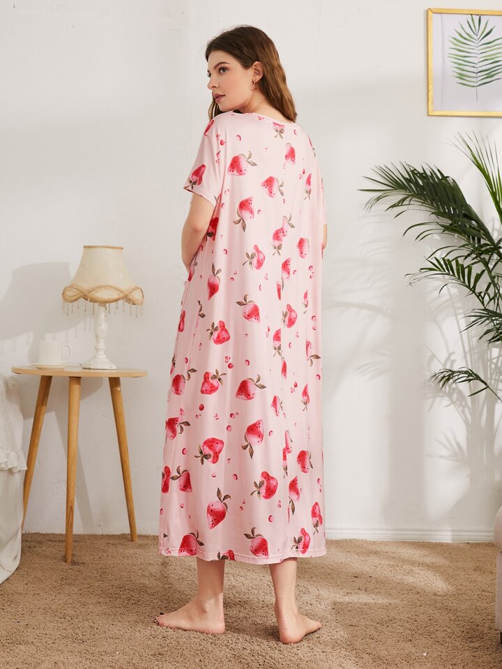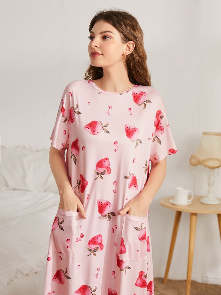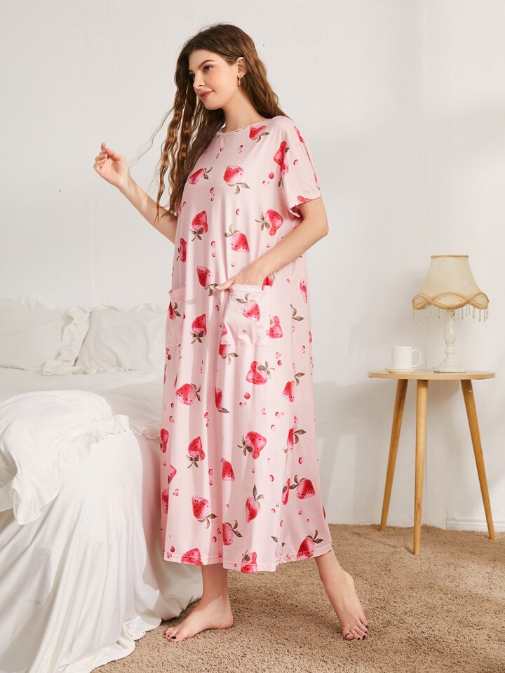 فستان نوم بجيب مرقة وطباعة فراولة متكررة