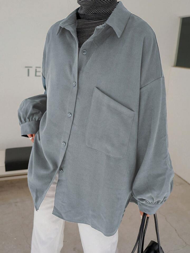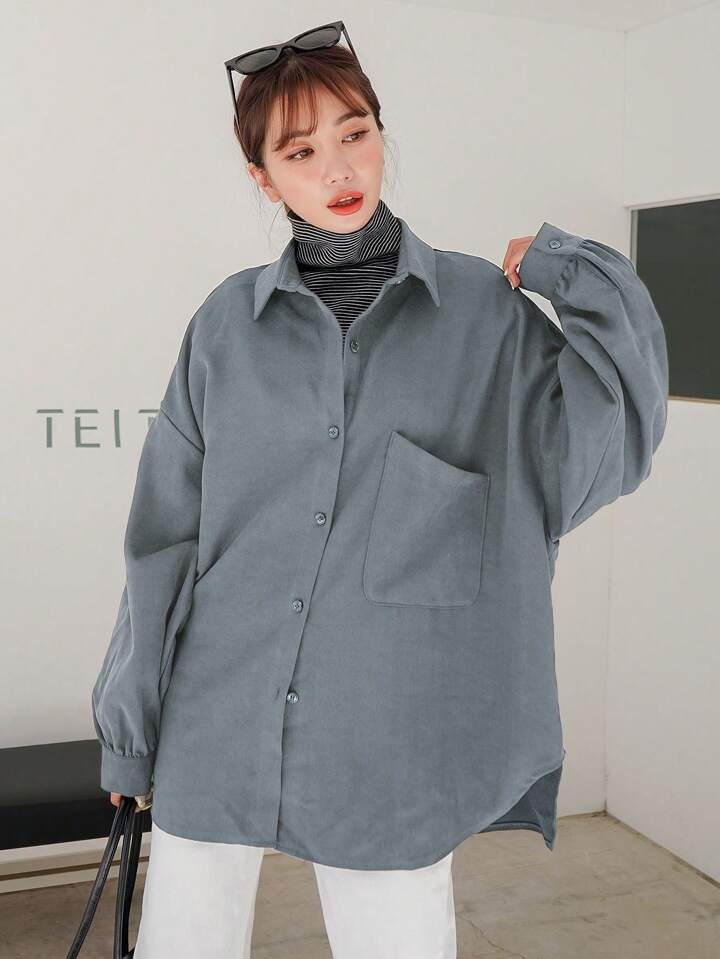 ملابس علوية كتف منسدل بجيب مرقع، ملابس علوية كم طويل للملابس الخريفية