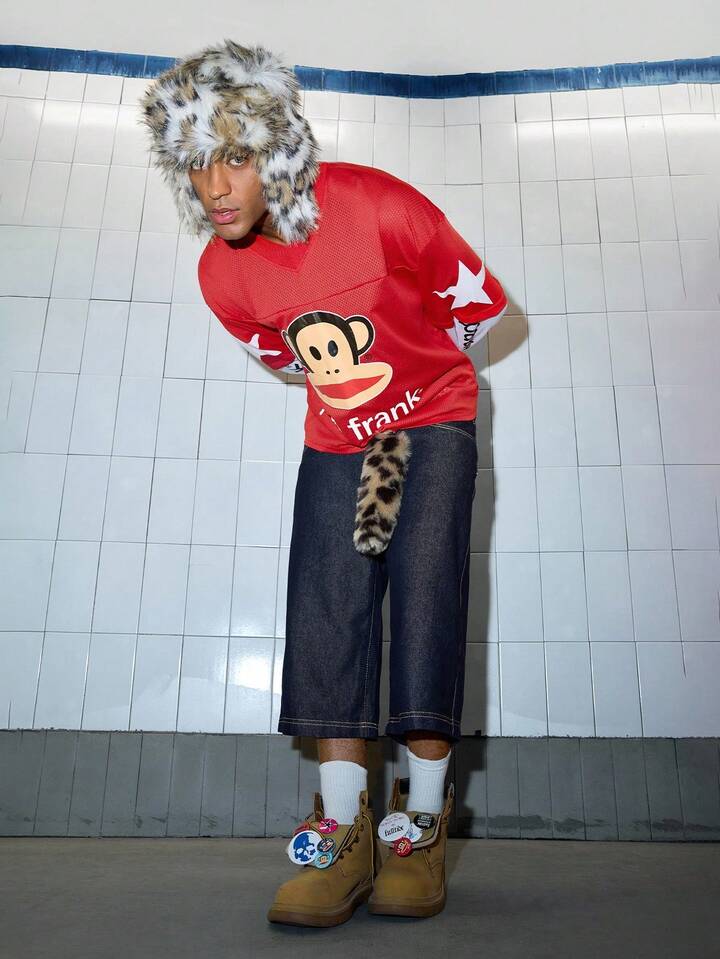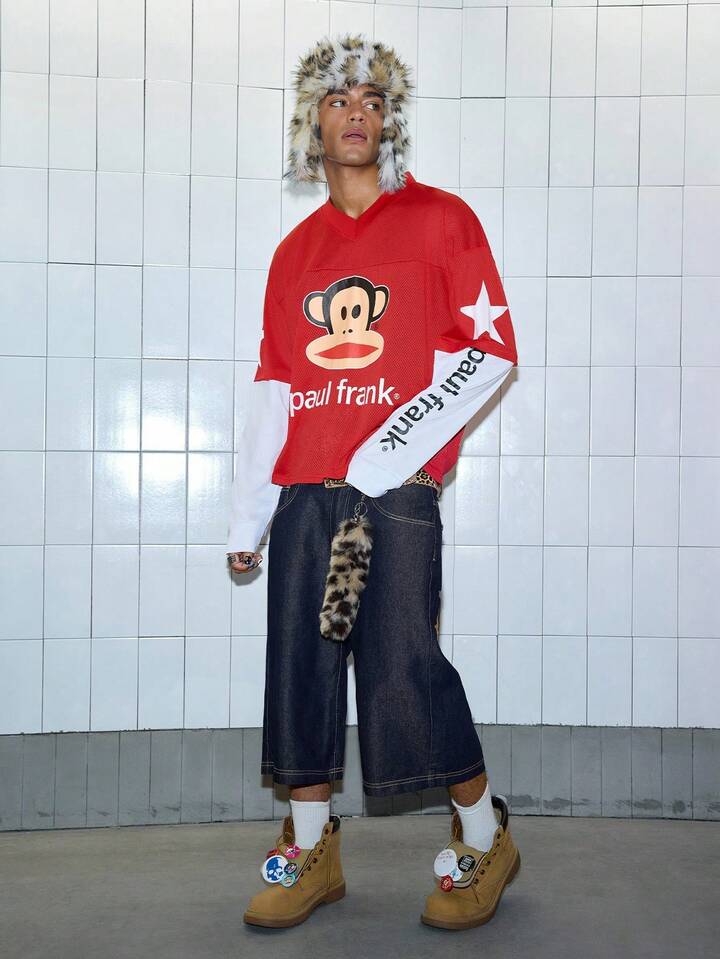 Paul Frank X ROMWE قميص تي شيرت رجالي كاجوال للاستخدام اليومي والشارع مطبوع برسم قرد وحرف، قابل للتنفس ومريح، مناسب للربيع والخريف