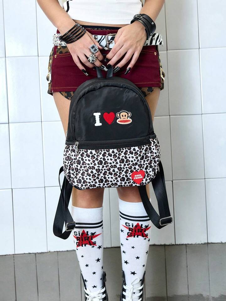 Paul Frank X ROMWE حقيبة ظهر نسائية Y2K بنمط مطبوع بالنمر ومطرز