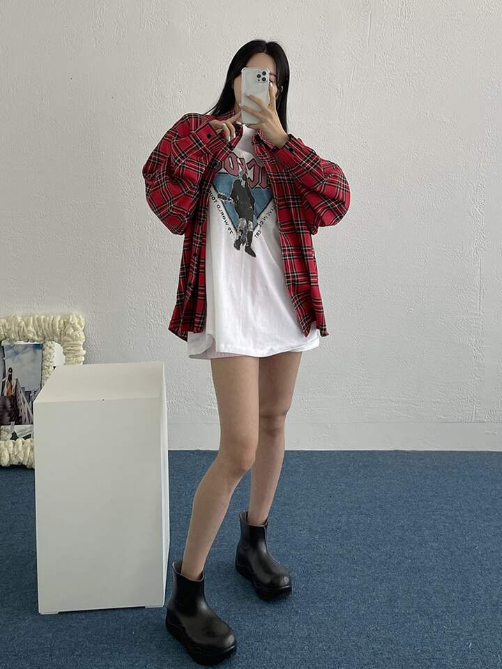 قميص مربعات ملونة أزرار من أعلى إلى أسفل طويل