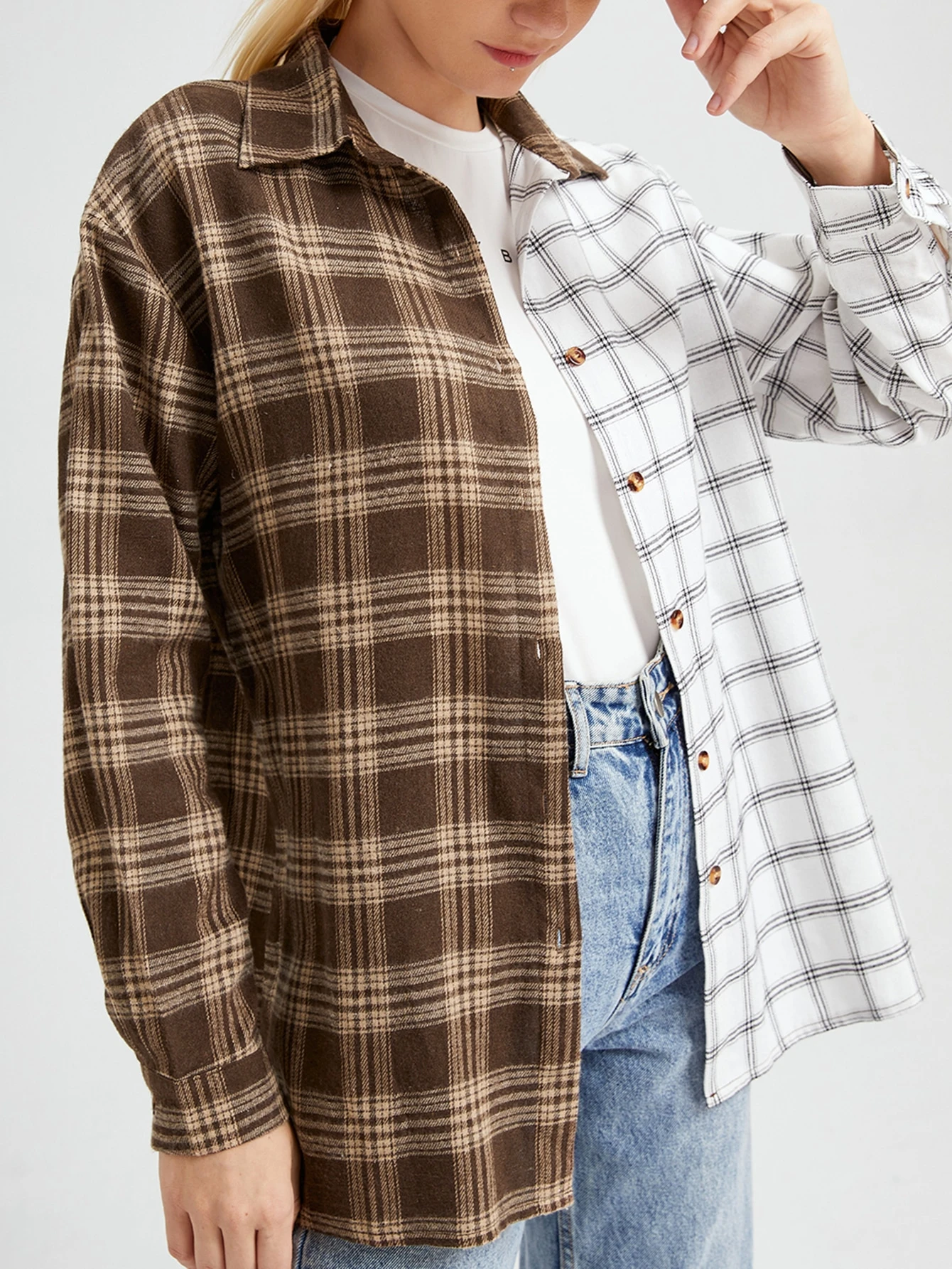 قميص مربعات ملونة ألوان متباينة أزرار أمامية