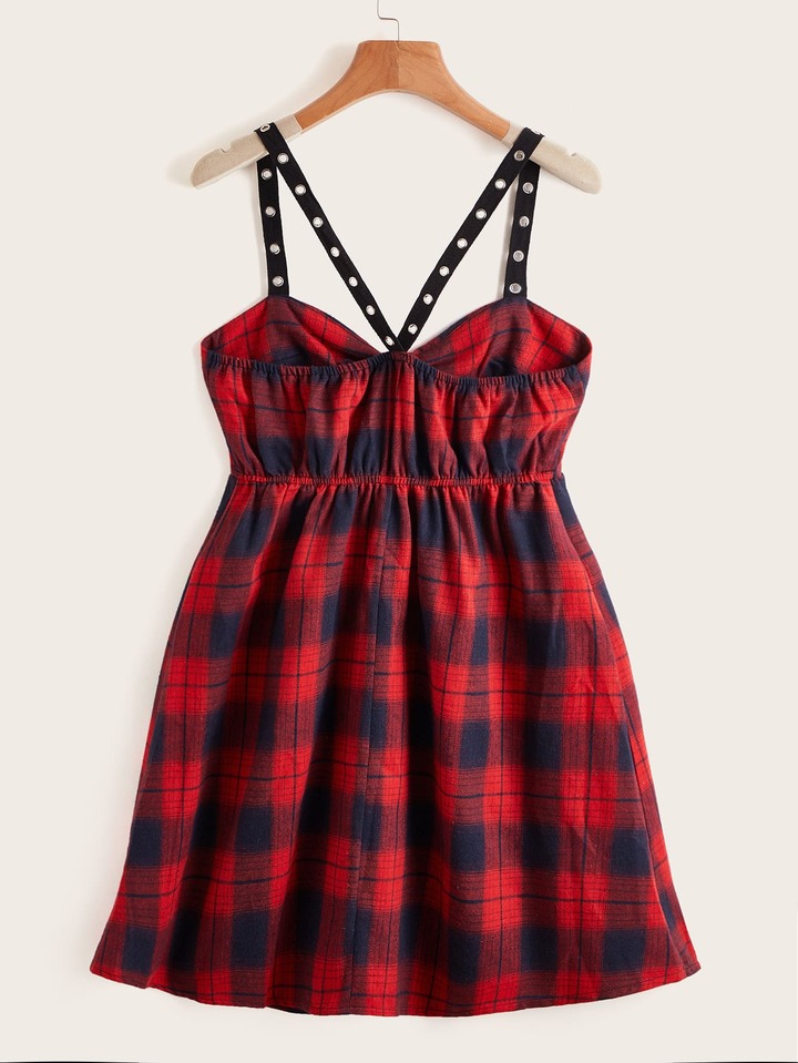 فساتين كامي مربعات ملونة فتحات حلقي معدني