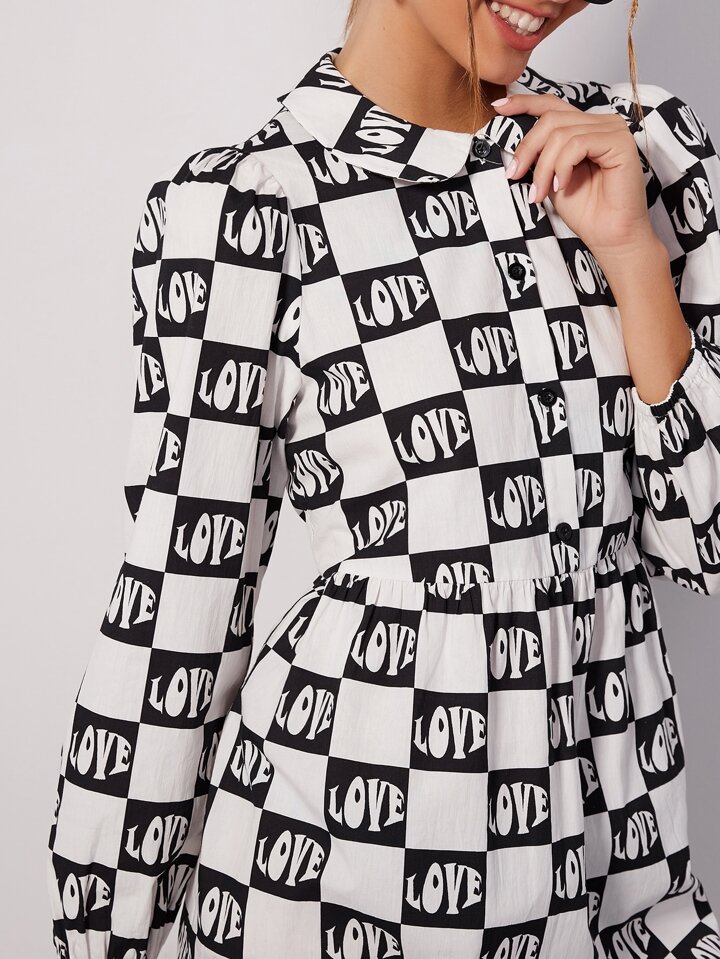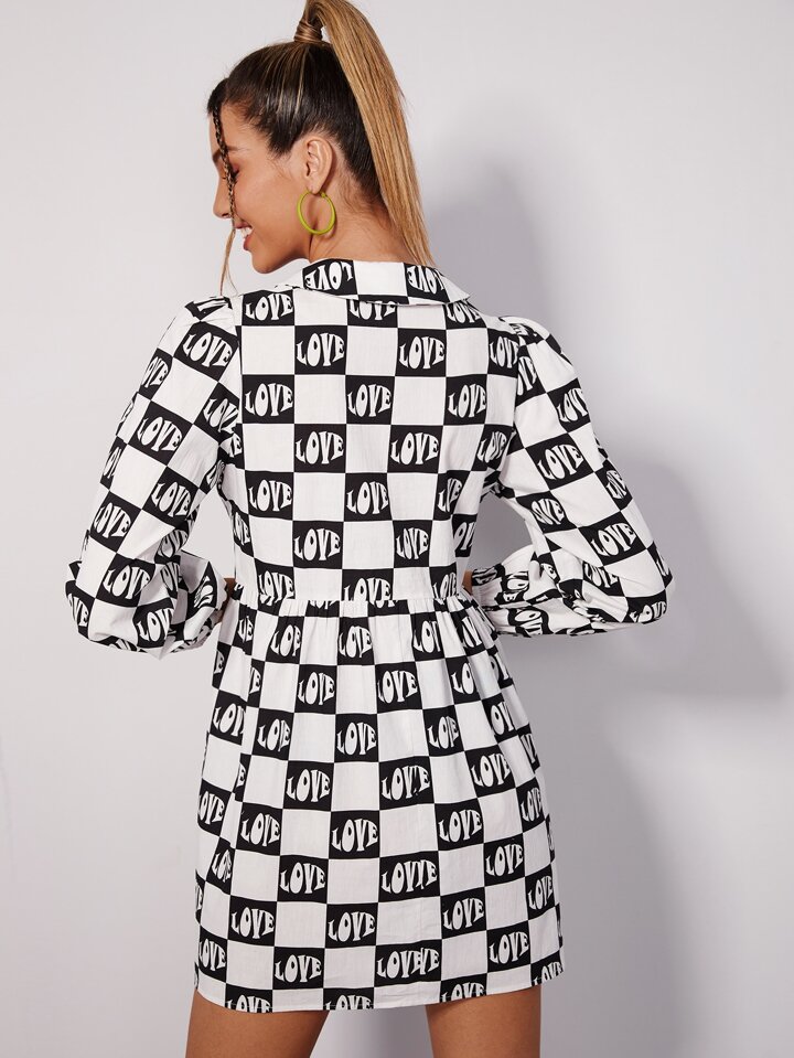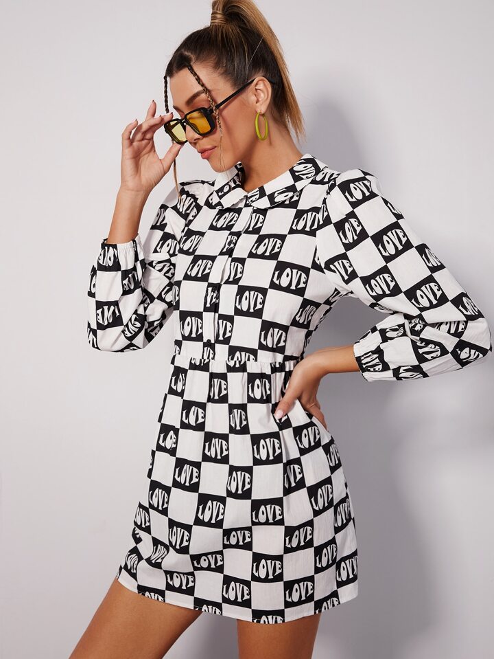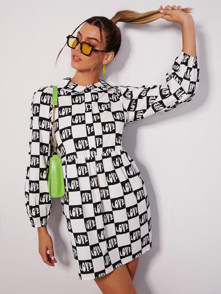 فستان مربعات ملونة مع بطباعة أحرف