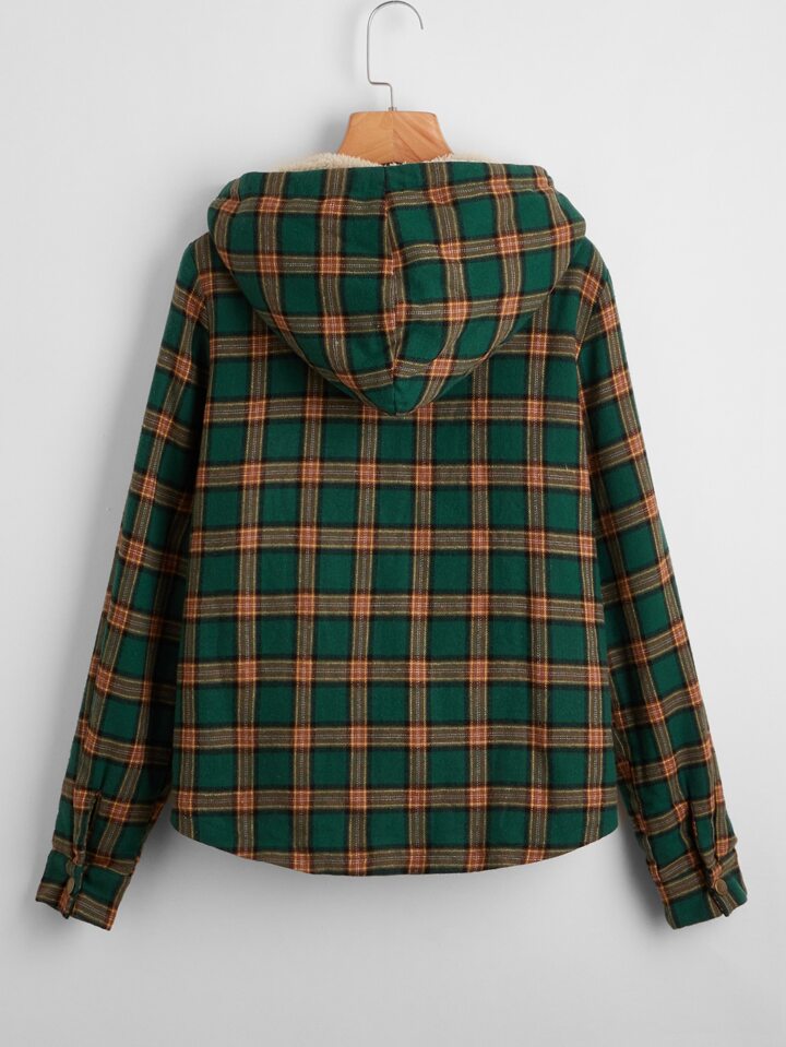 معطف مبطن بطبعة المربعات مع أزرار معشقة وسحاب للرأس مناسب للخريف والشتاء
