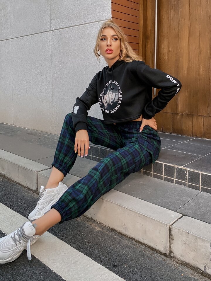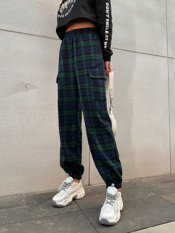 بنطلون كارجو بجيب رفرف ومربع النقش