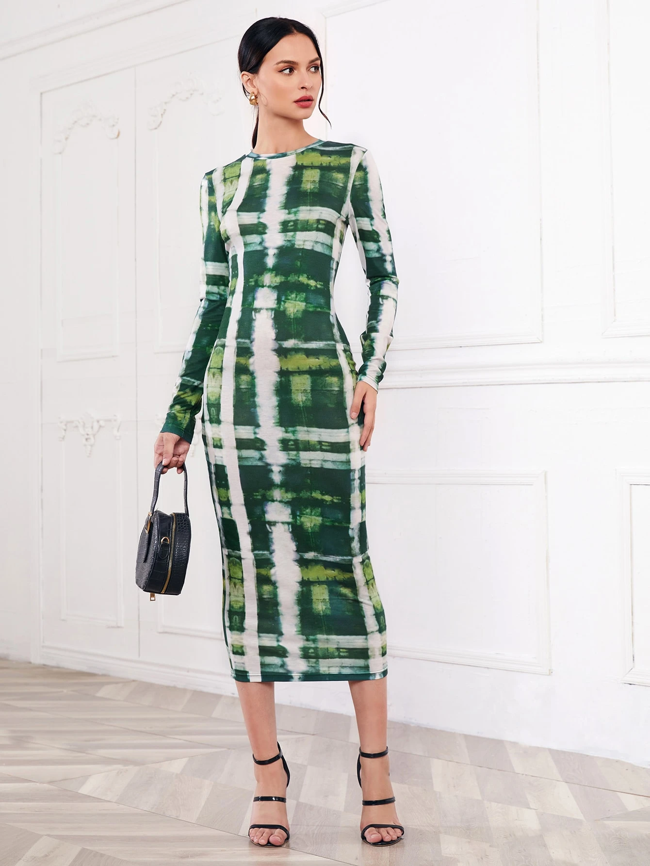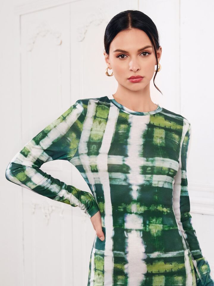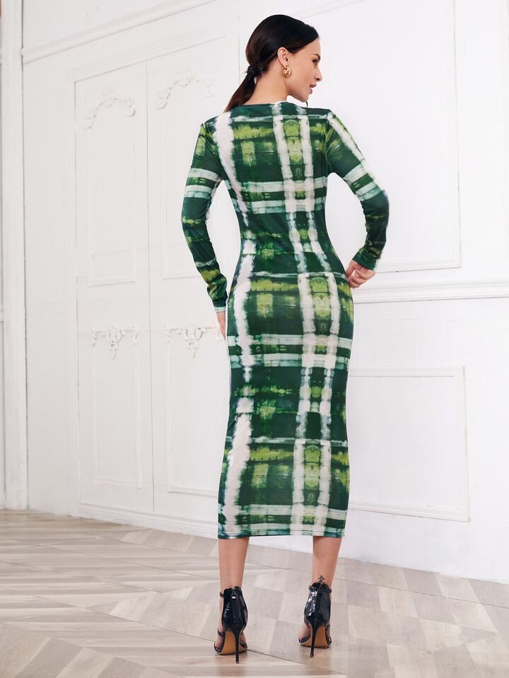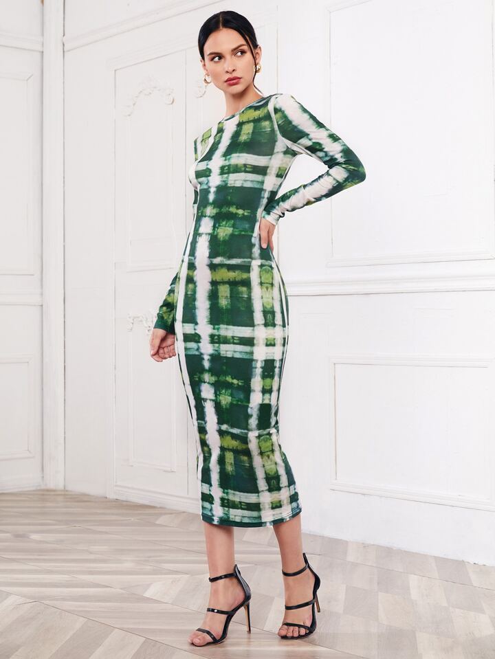 فستان ضيق بصبغة معتدل مربع النقش
