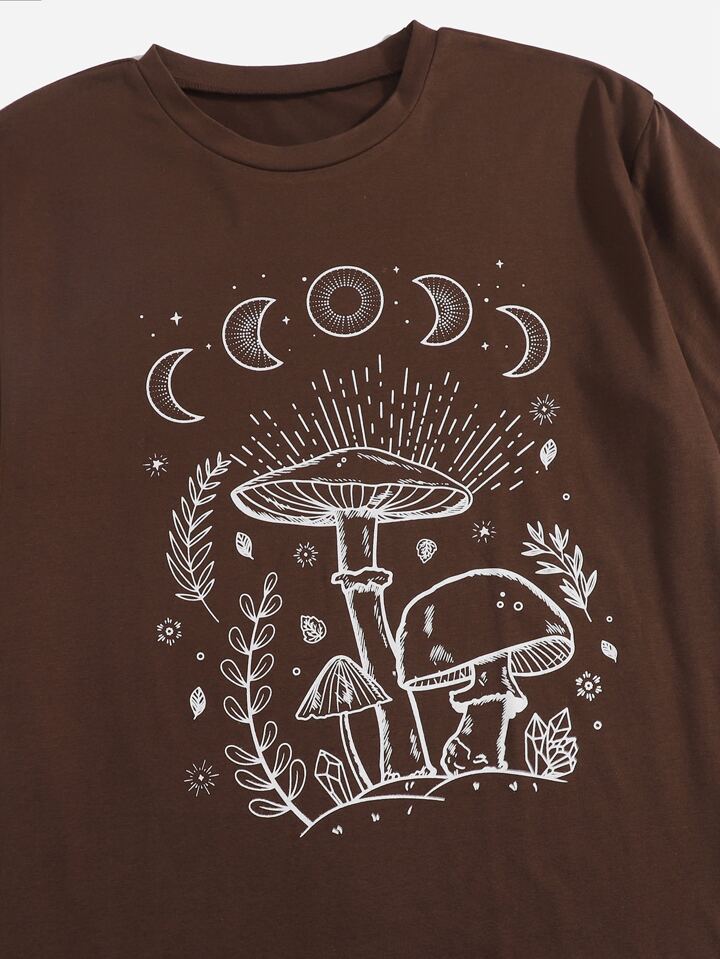 مقاس كبير تي شيرت قمر مع بطباعة فطر 2 قطع