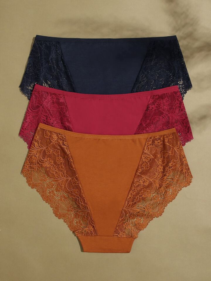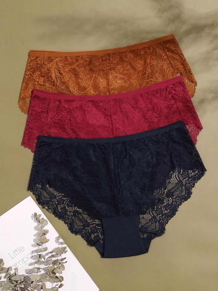 سروال داخلي دانتيل زهري 3 قطع مقاس كبير