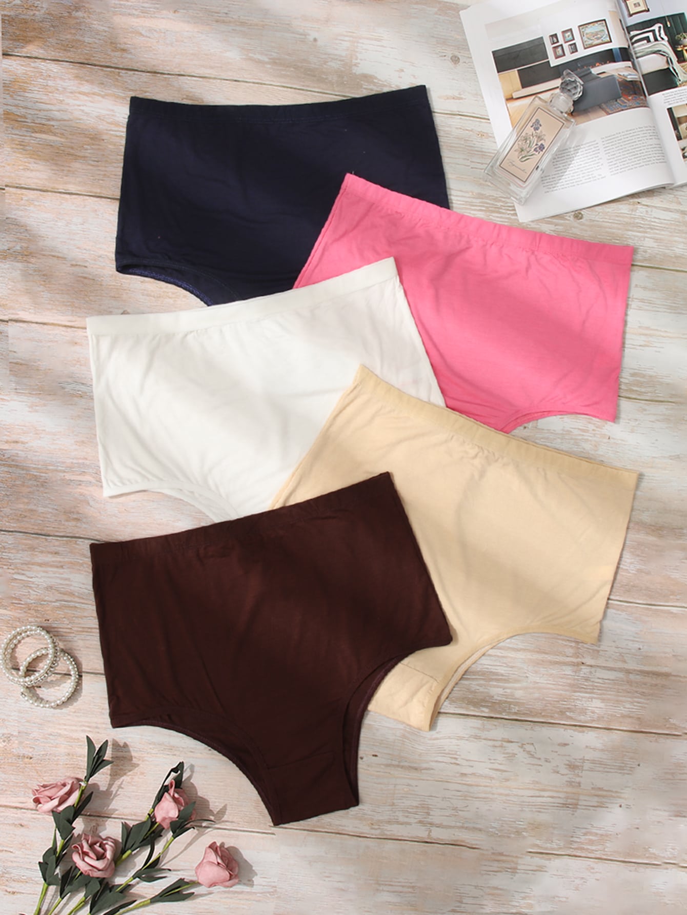 سروال داخلي بسيط خصر عالي 5 قطع مقاس كبير
