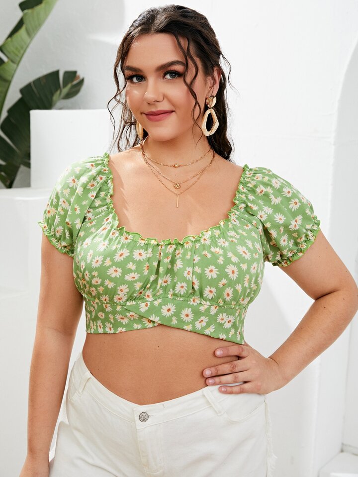 بلوزة كروب بياقة عميق بطباعة زهر اقحوان شامل مقاس كبير